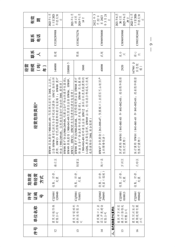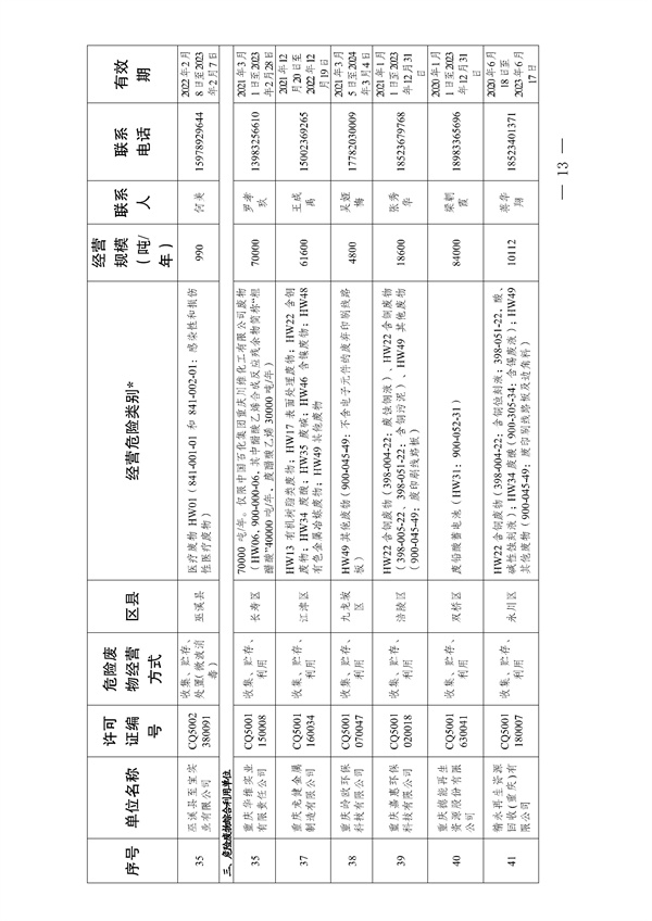 《重慶市 2022年第一季度全市危險(xiǎn)廢物經(jīng)營(yíng)許可證持證單位有關(guān)情況通報(bào)》