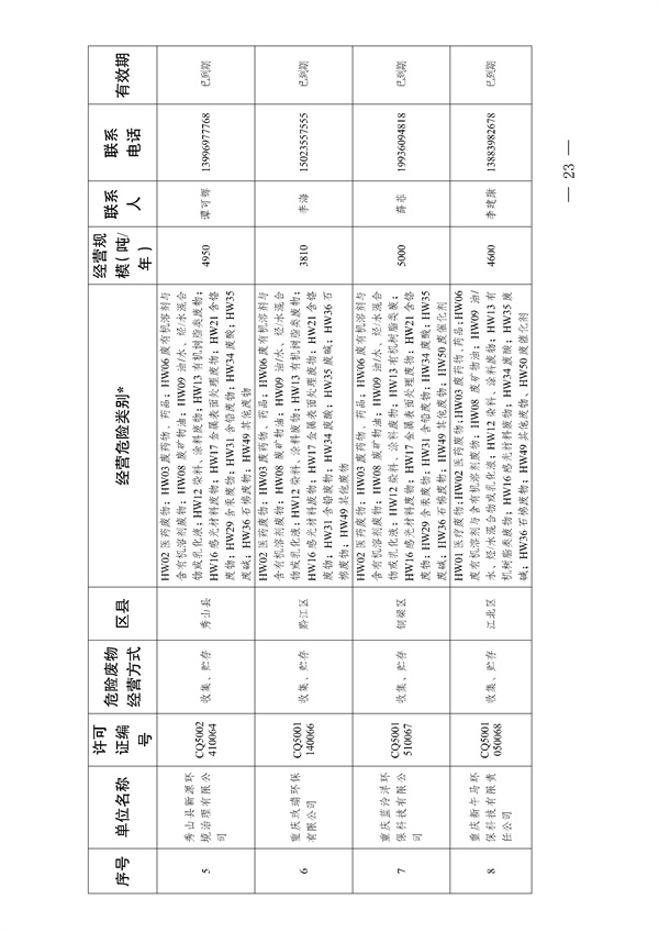 日前,重慶市生態(tài)環(huán)境局通報(bào)了2022年第一季度(截止2022年3月31日)全市危險(xiǎn)廢物經(jīng)營(yíng)許可證持證單位有關(guān)情況,其中市級(jí)80家持證單位,另有19家到期,區(qū)縣級(jí)共計(jì)27家持證單位。詳情如下: