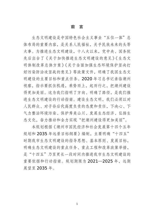 《潮州市生態(tài)文明建設(shè)規(guī)劃》(2021—2025年)