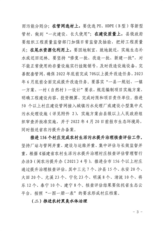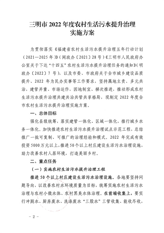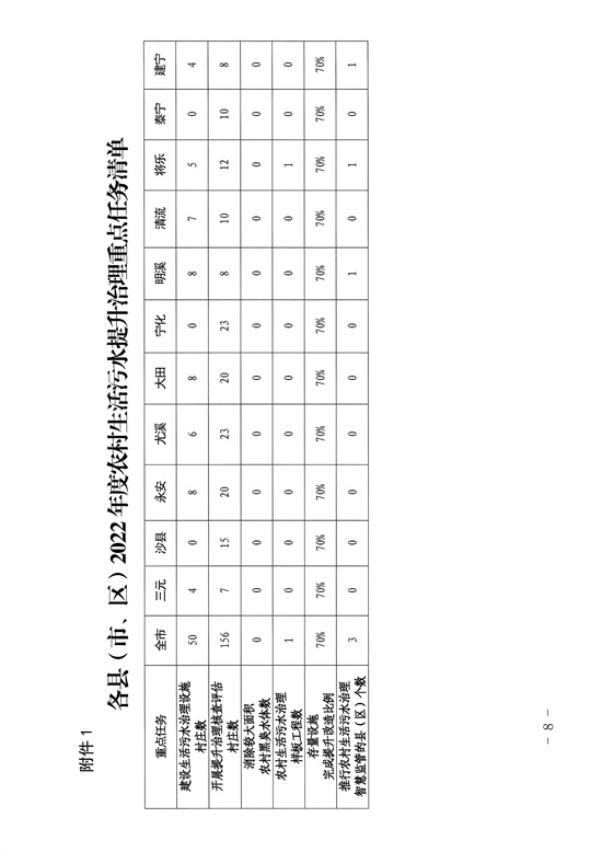 《福建省 三明市2022年度農(nóng)村生活污水提升治理實施方案》(明農(nóng)污提升辦【2022】1號)