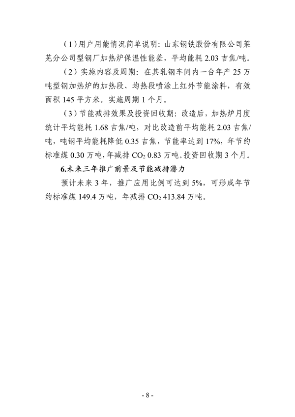 日前,濟南市工業(yè)和信息化局文件印發(fā)關于《加強工業(yè)節(jié)能技術推廣應用工作》的通知,以加快推廣應用先進適用節(jié)能技術裝備產(chǎn)品,推動工業(yè)能效提升,助力碳達峰、碳中和目標實現(xiàn),文件中推薦了適用于鋼鐵行業(yè)、有色行業(yè)、建材行業(yè)、石化行業(yè)等更多個行業(yè)的數(shù)十種工業(yè)節(jié)能技術。詳情如下: