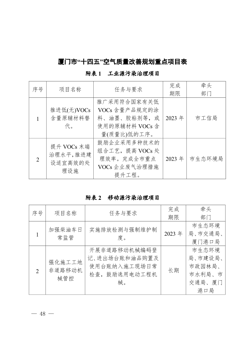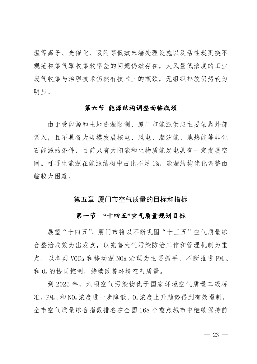 《廈門市“十四五”空氣質(zhì)量改善規(guī)劃》