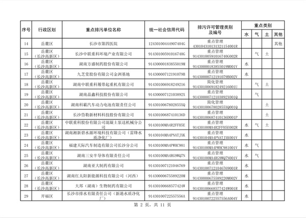 日前,長沙公布2022年重點排污單位名錄。涉及大氣環(huán)境、水環(huán)境等重點排污單位171家。詳情如下: