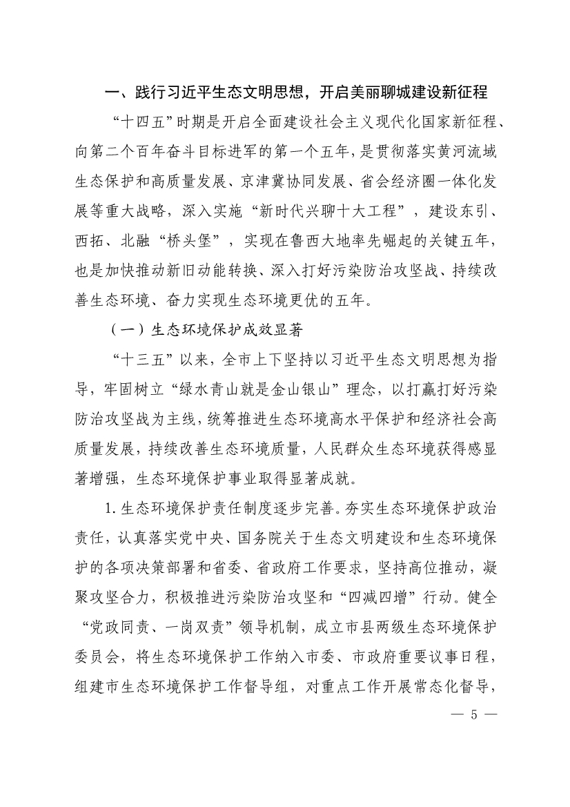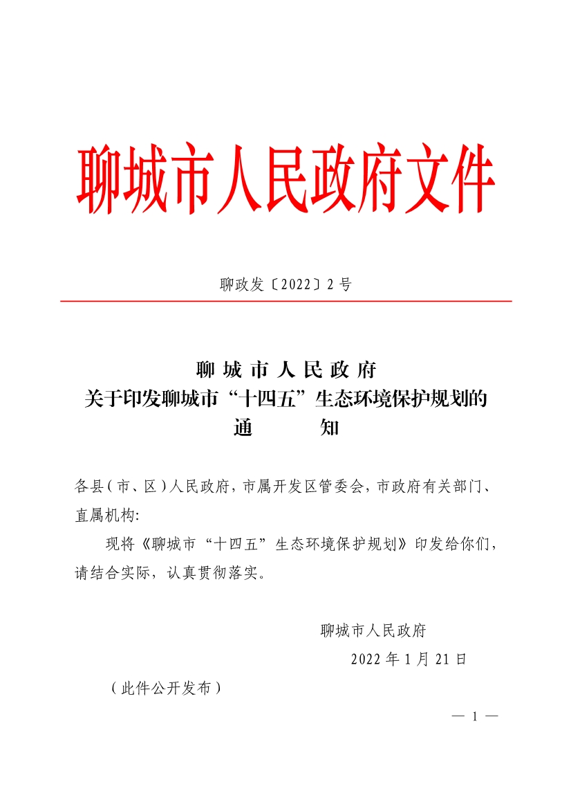 《聊城市“十四五”生態(tài)環(huán)境保護規(guī)劃》(聊政發(fā)【2022】2號)