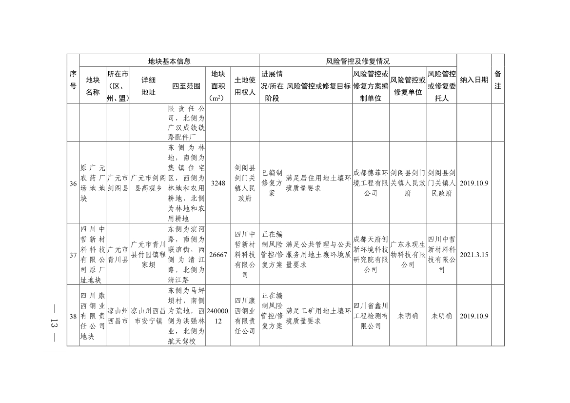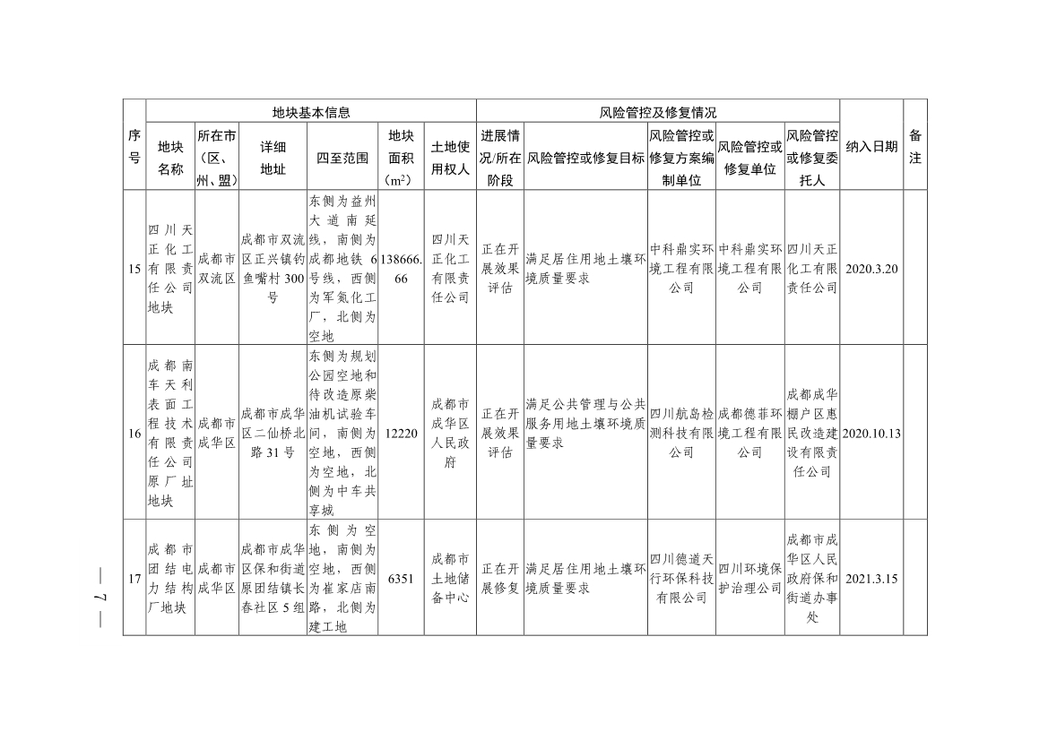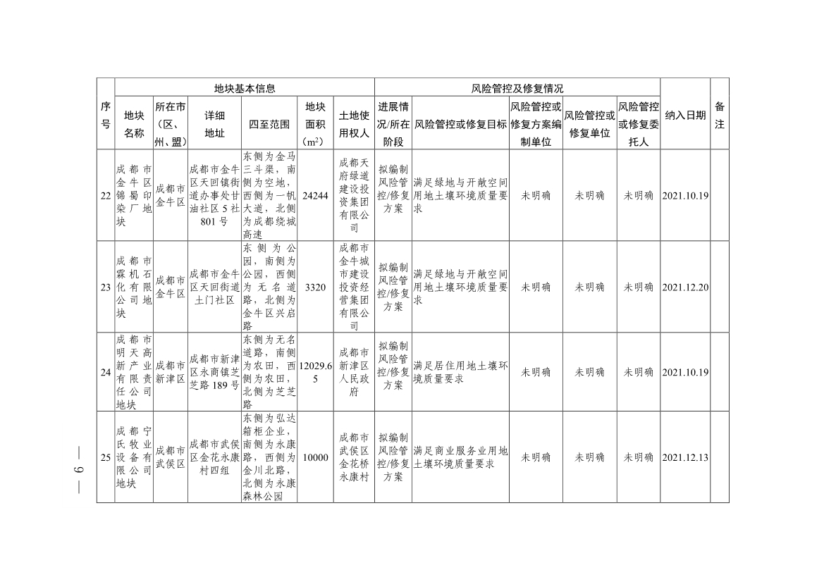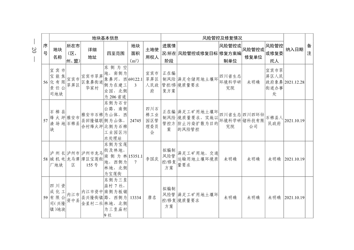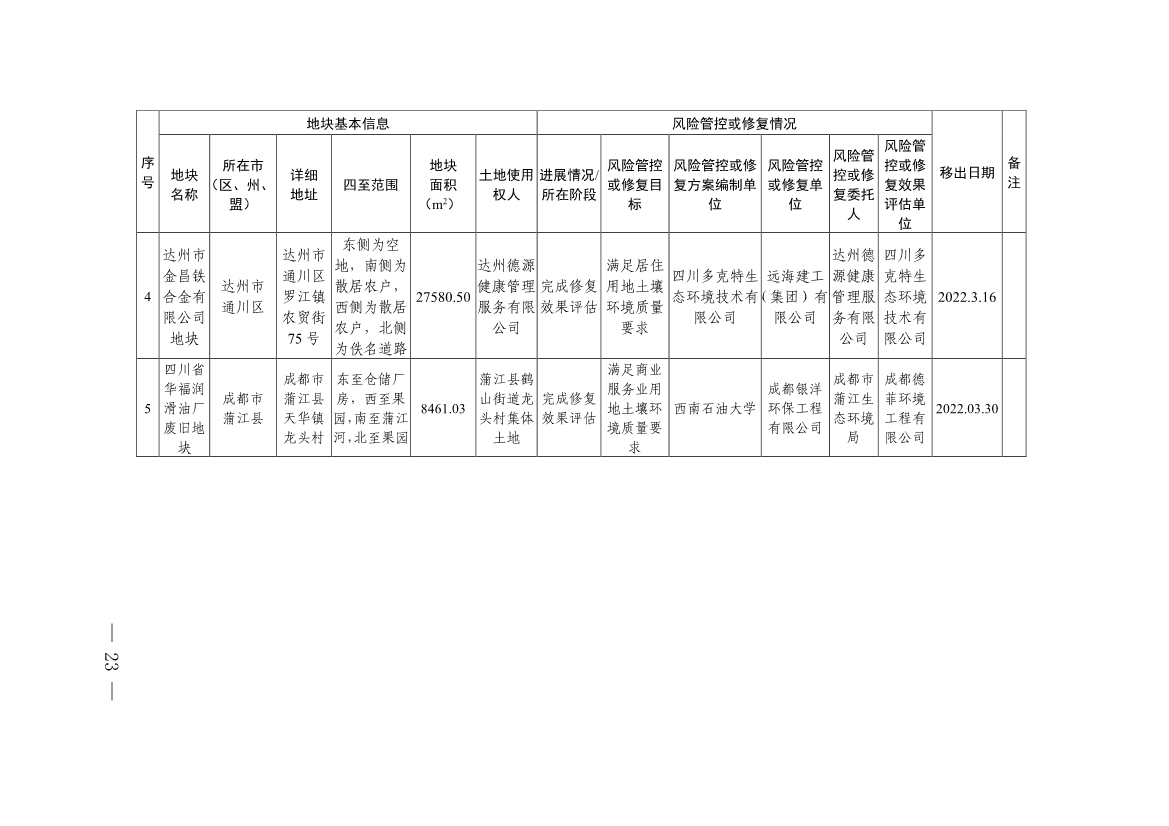《四川省建設(shè)用地土壤污染風(fēng)險(xiǎn)管控和修復(fù)名錄》(第六次更新)