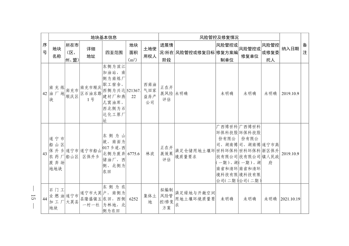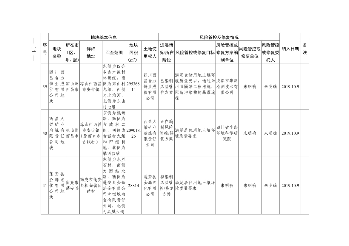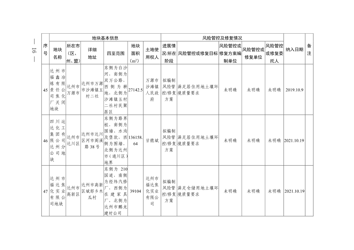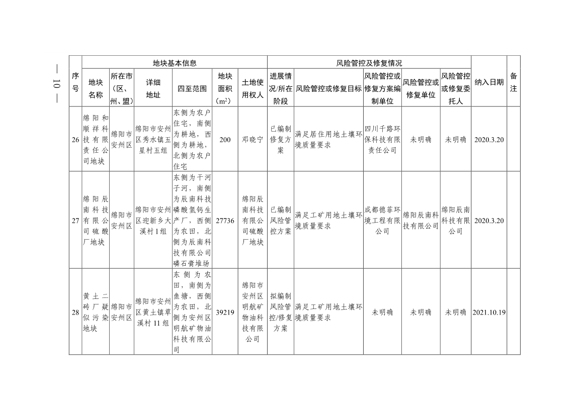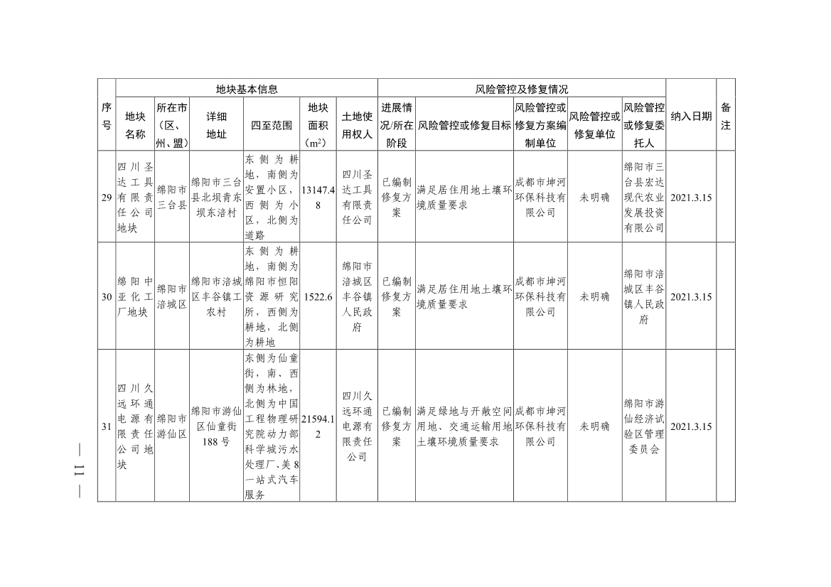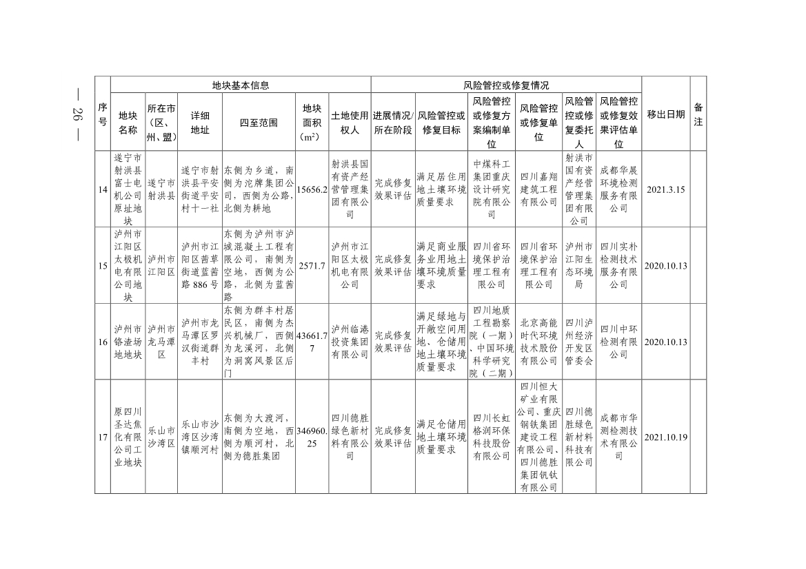 《四川省建設(shè)用地土壤污染風(fēng)險(xiǎn)管控和修復(fù)名錄》(第六次更新)