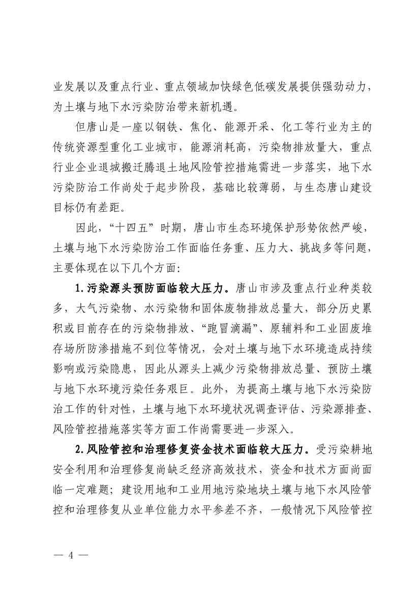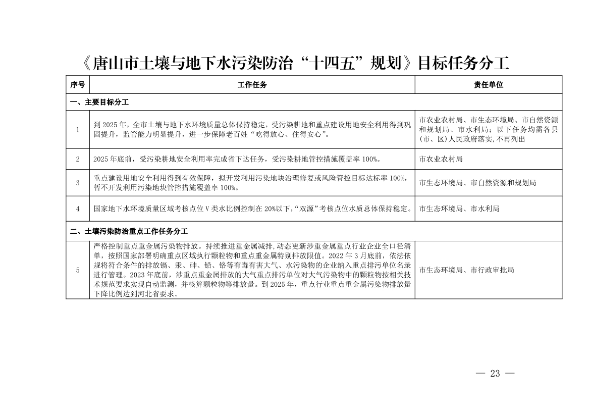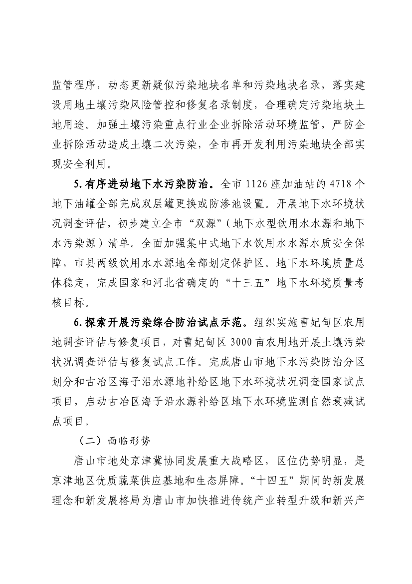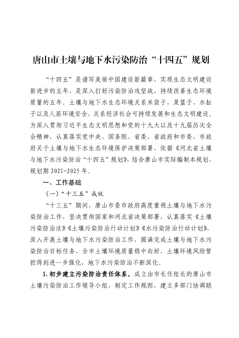 《唐山市土壤與地下水污染防治“十四五”規(guī)劃(2021-2025 年)》