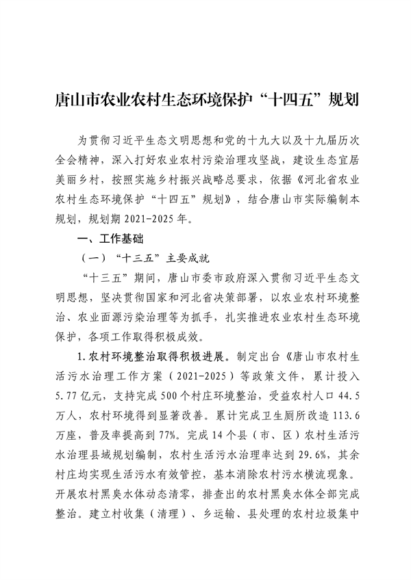 《唐山市農(nóng)業(yè)農(nóng)村生態(tài)環(huán)境保護(hù) “十四五”規(guī)劃》