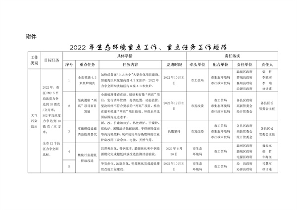 《長治市2022年生態(tài)環(huán)境重點(diǎn)工作、重點(diǎn)任務(wù)工作矩陣》