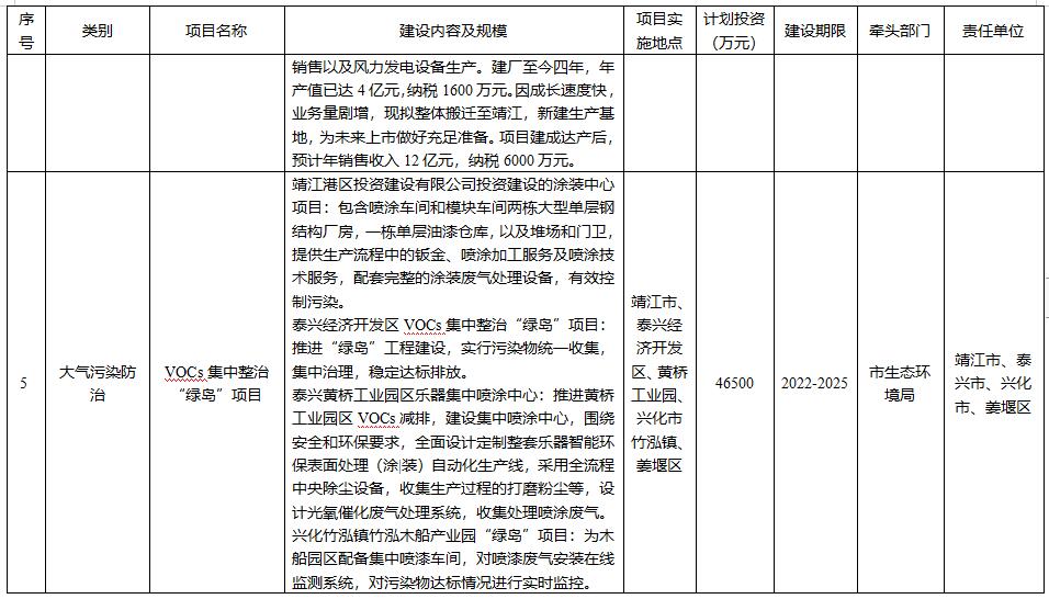 根據(jù)《泰州市重點行業(yè)錯峰生產(chǎn)實施方案》,對化工、醫(yī)藥制造、工業(yè)涂裝、包裝印刷、紡織印染、油品儲運銷等行業(yè)251家企業(yè)實施錯峰生產(chǎn),減少VOCs(揮發(fā)性有機物)等臭氧前體物質(zhì)排放量,不斷降低空氣臭氧濃度。2022年,完成VOCs治理類項目700項。完成VOCs綜合治理項目100項以上,完成600個揮發(fā)性有機物無組織排放治理項目。督促揮發(fā)性有機物重點監(jiān)管企業(yè)完成“一企一策”方案編制,推動企業(yè)實施全過程深度治理,確保減排效果。(市生態(tài)環(huán)境局牽頭)禁止建設(shè)生產(chǎn)和使用不符合VOCs含量限值標(biāo)準(zhǔn)的涂料、油墨、膠黏劑等項目,2022年完成177家重點企業(yè)VOCs清潔原料替代。(市生態(tài)環(huán)境局負責(zé))