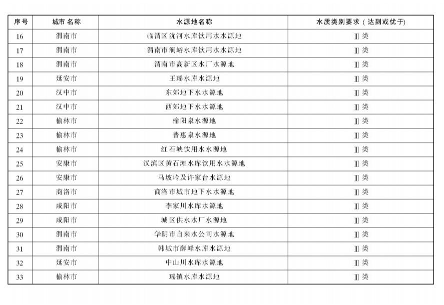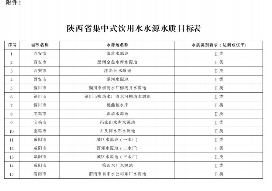 1.陜西省集中式飲用水水源水質(zhì)目標(biāo)表