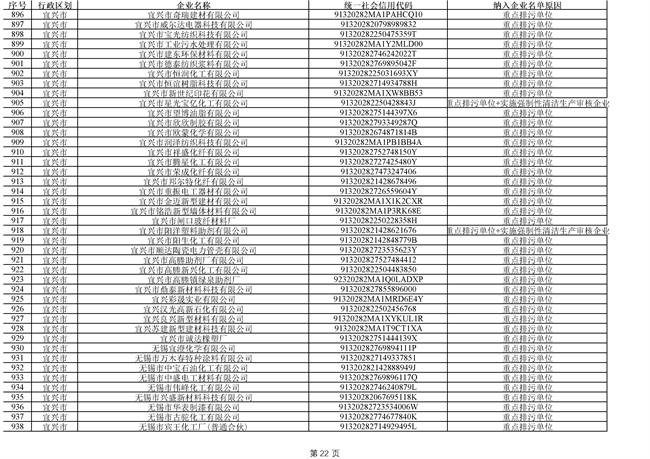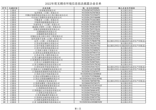《無錫市2022年度環(huán)境信息依法披露企業(yè)名單》
