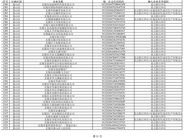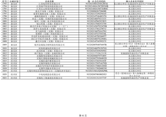 日前,無錫市公示了《2022年度無錫市環(huán)境信息依法披露企業(yè)名單》,含重點(diǎn)排污單位和實(shí)施強(qiáng)制性清潔生產(chǎn)審核企業(yè)合計1821家。詳情如下: