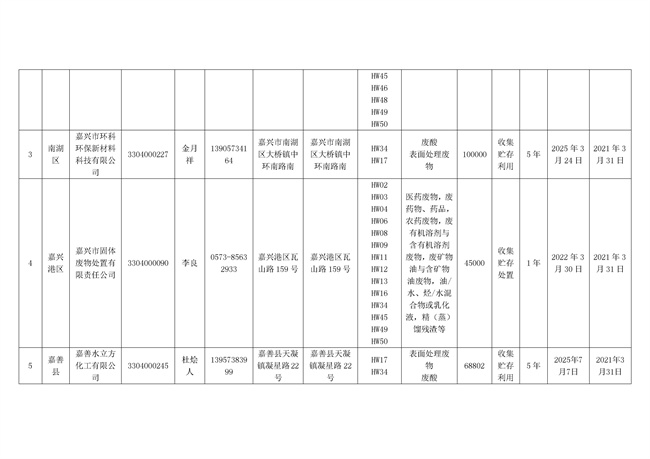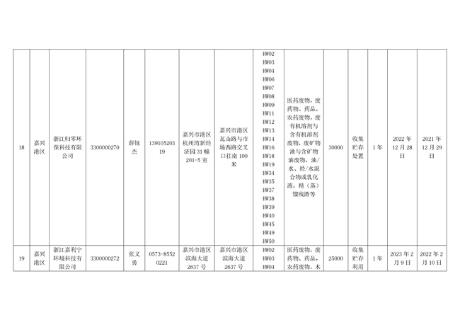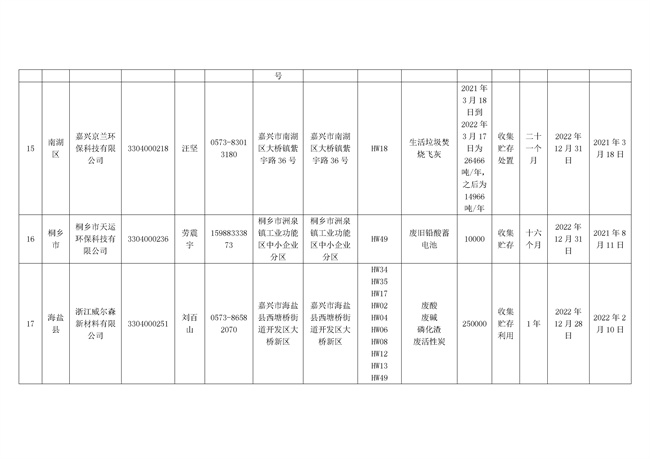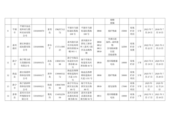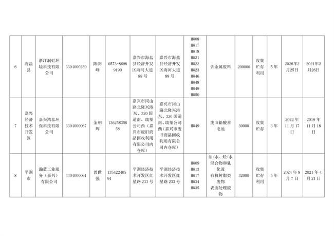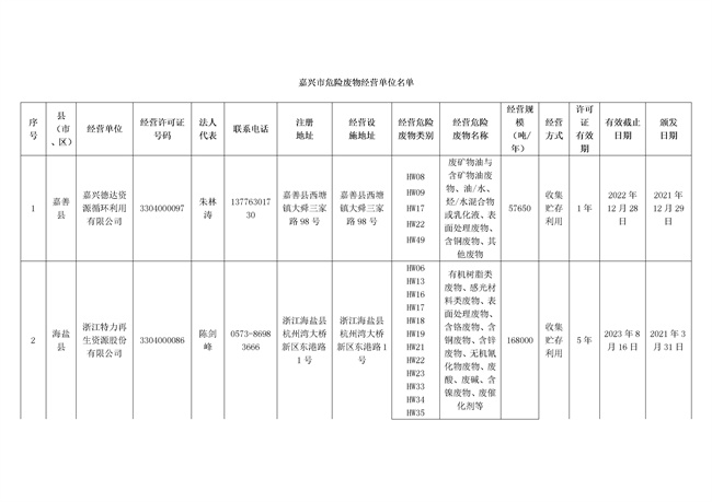 《浙江嘉興市危險(xiǎn)廢物經(jīng)營單位名單》(附聯(lián)系方式)
