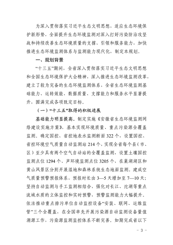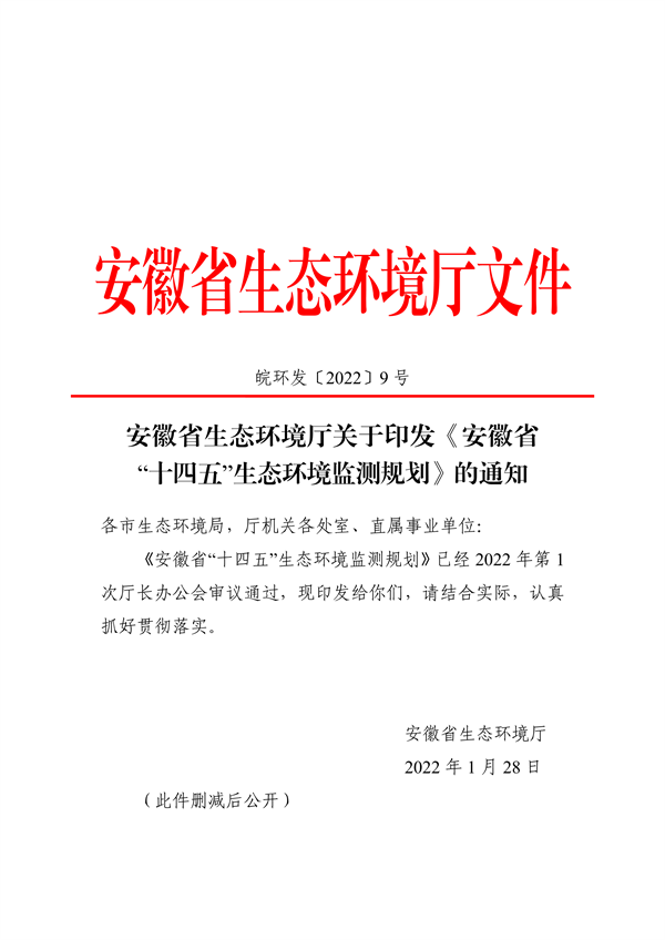 《安徽省“十四五”生態(tài)環(huán)境監(jiān)測規(guī)劃》(皖環(huán)法【2022】9號)