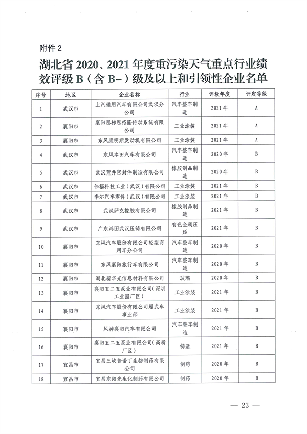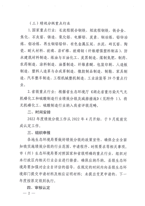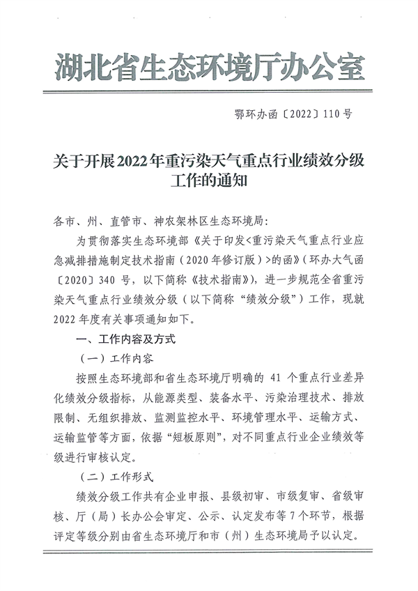 《湖北省關(guān)于開展2022年重污染天氣重點行業(yè)績效分級工作的通知》(鄂環(huán)辦函【2022】110號)