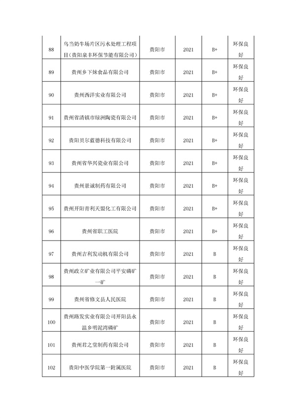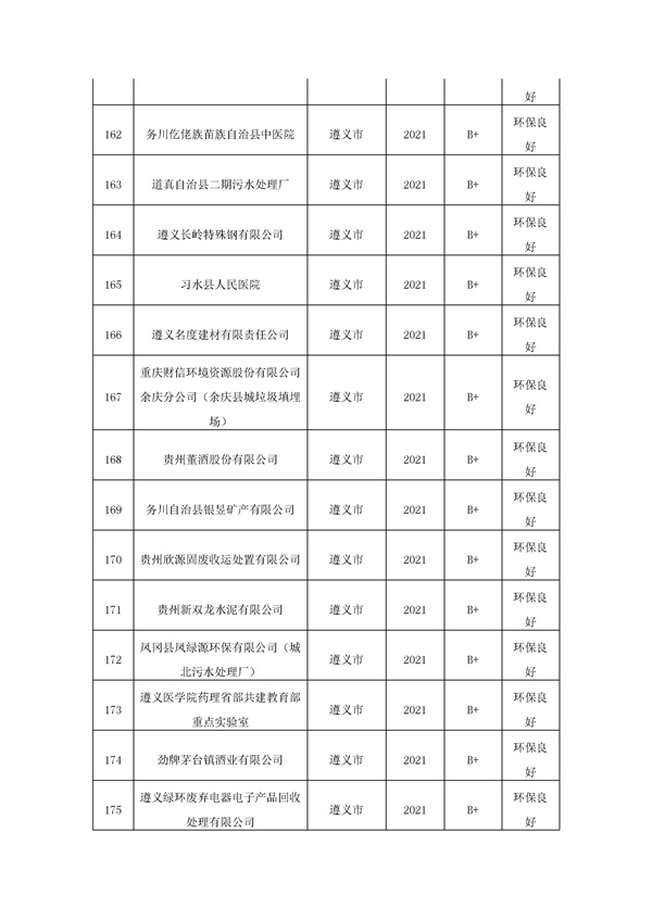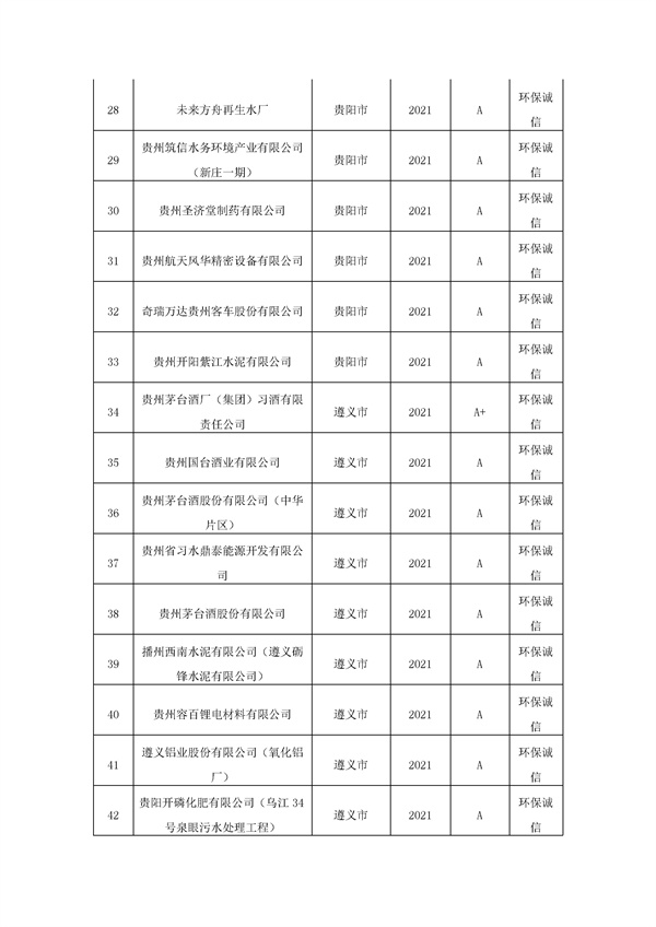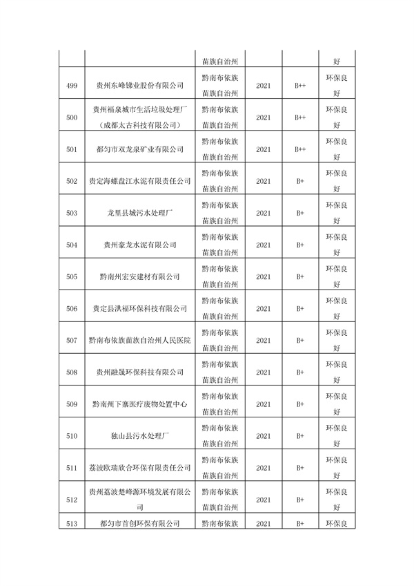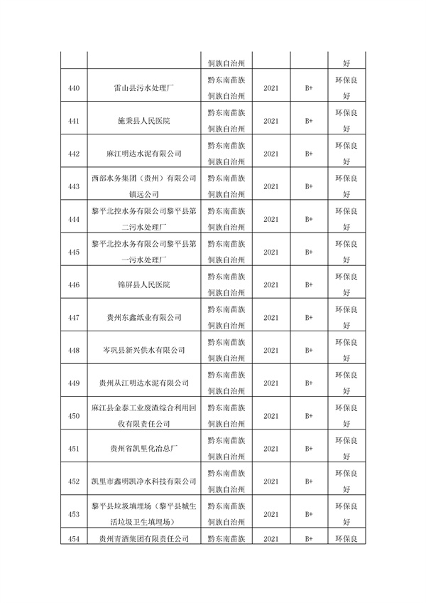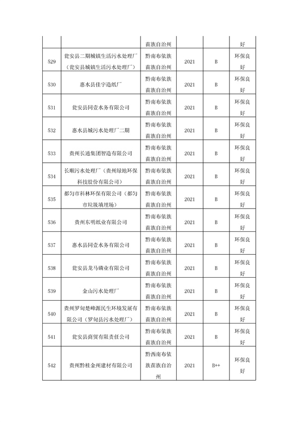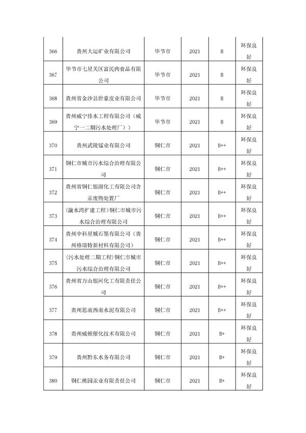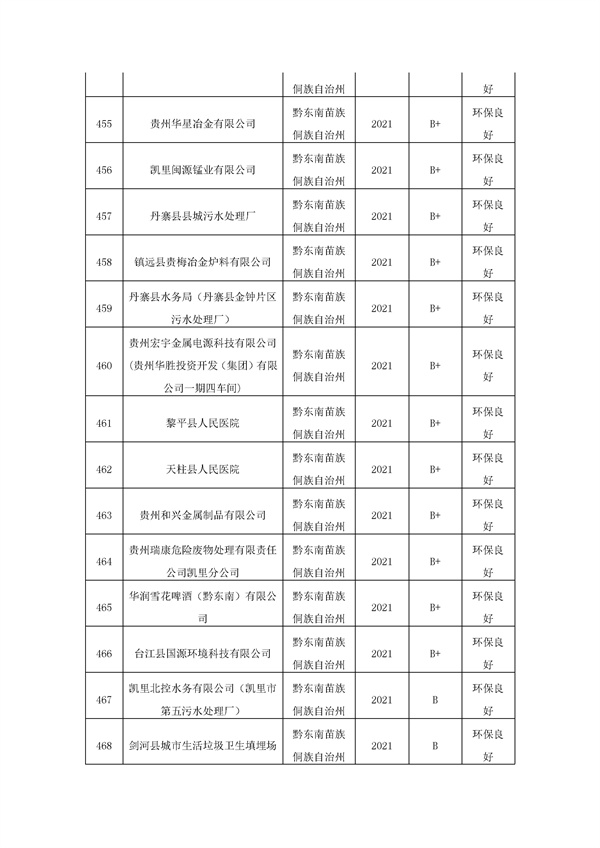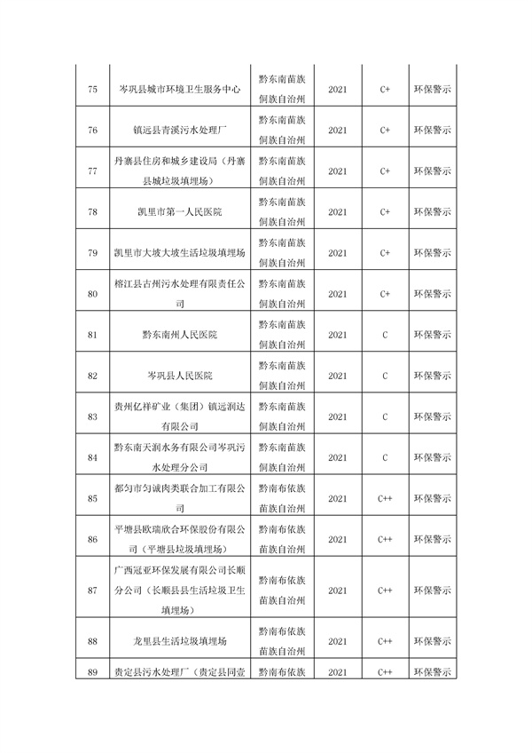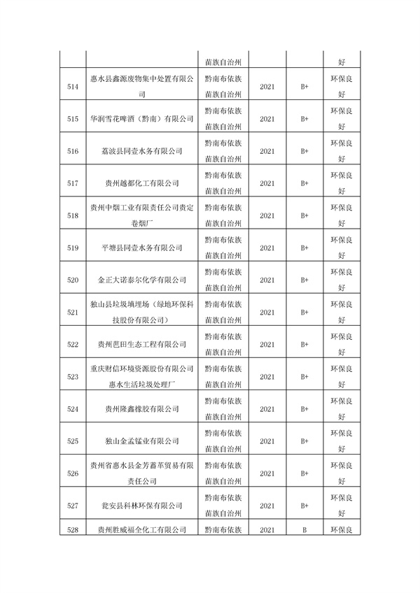 日前,貴州省公示了《2021年度全省重點排污單位環(huán)境信用評價初評結(jié)果》,98家環(huán)保誠信企業(yè)(其中污水處理廠占十余個名額),579家環(huán)保良好企業(yè),101家環(huán)保警示企業(yè)(其中涉及多個生活垃圾填埋場、生活垃圾處理廠、污水處理廠),55家環(huán)保不良企業(yè),15家超過半年以上停產(chǎn)企業(yè)。詳情如下: