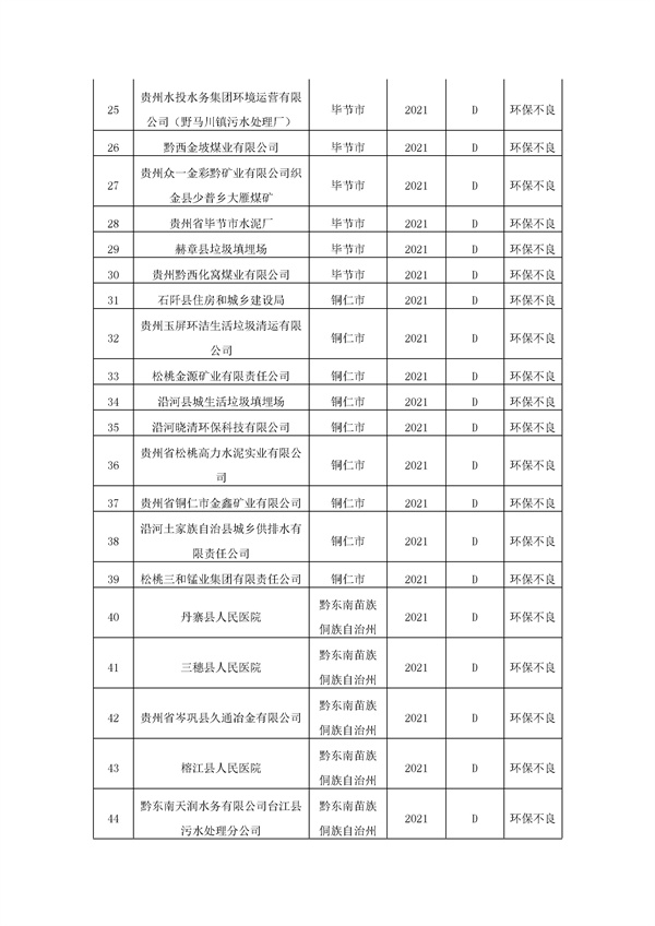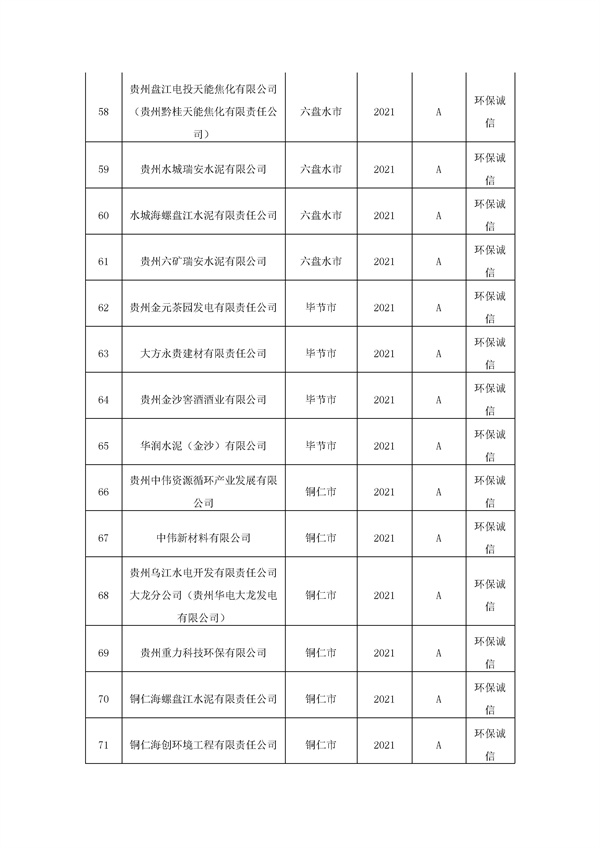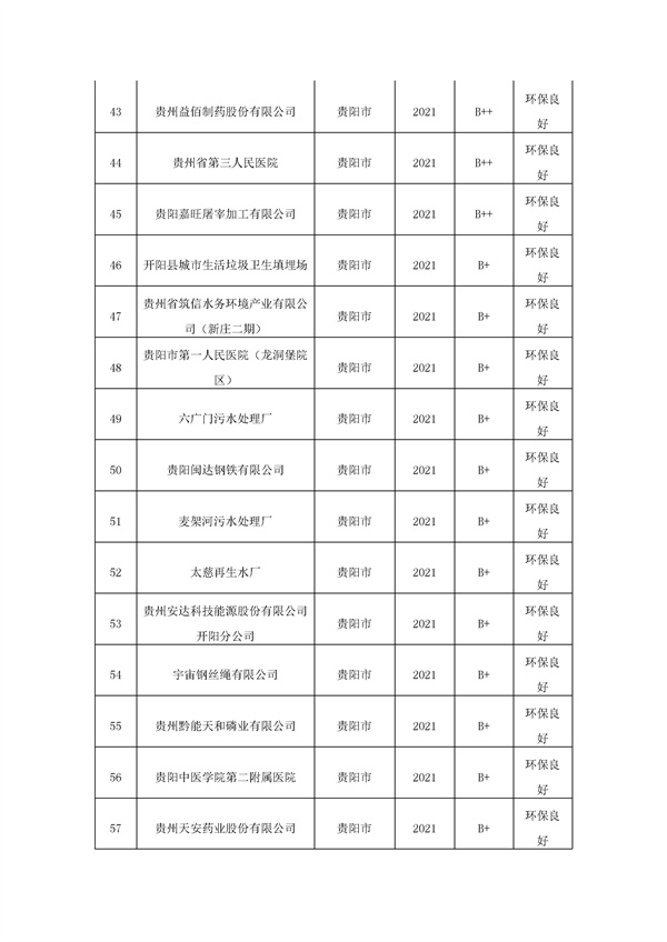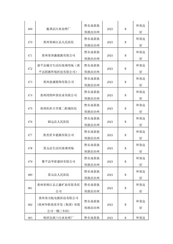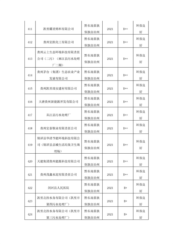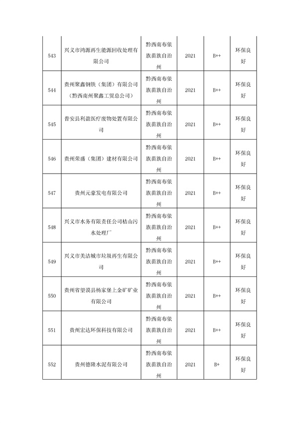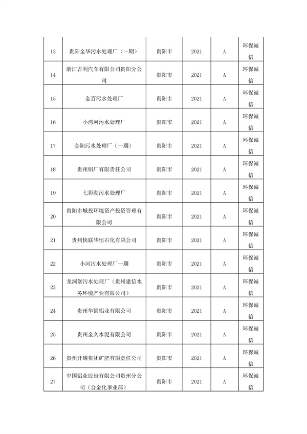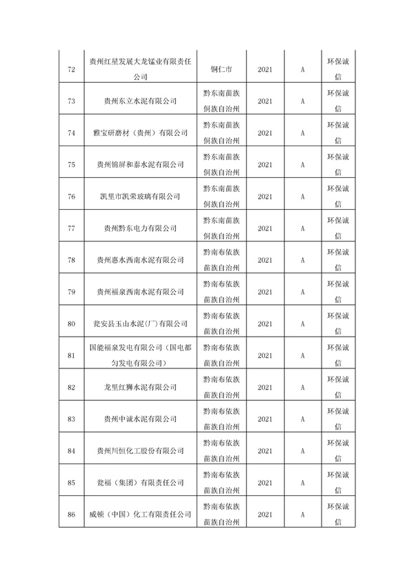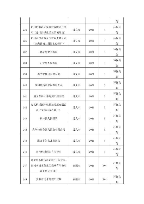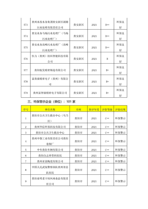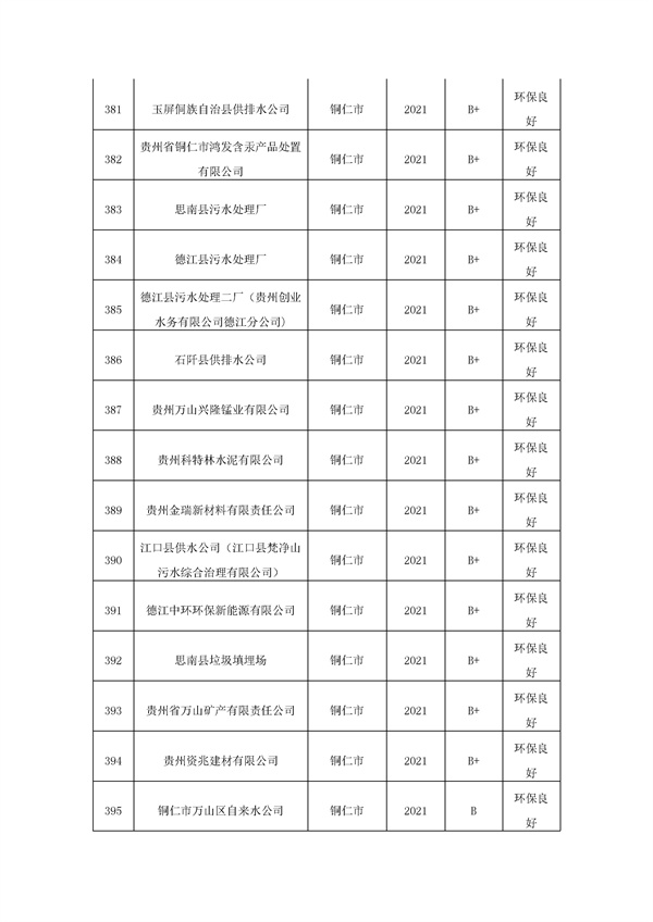 日前,貴州省公示了《2021年度全省重點排污單位環(huán)境信用評價初評結(jié)果》,98家環(huán)保誠信企業(yè)(其中污水處理廠占十余個名額),579家環(huán)保良好企業(yè),101家環(huán)保警示企業(yè)(其中涉及多個生活垃圾填埋場、生活垃圾處理廠、污水處理廠),55家環(huán)保不良企業(yè),15家超過半年以上停產(chǎn)企業(yè)。詳情如下: