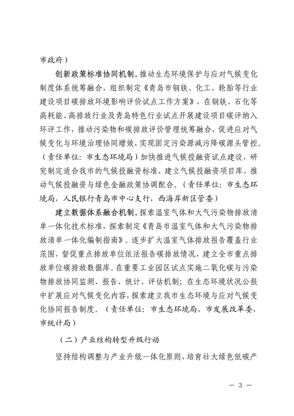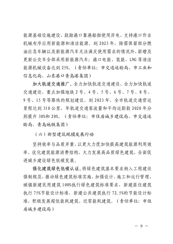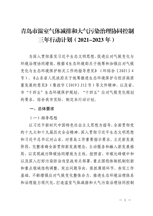 《青島市溫室氣體減排和大氣污染治理協(xié)同控制三年行動(dòng)計(jì)劃》(2021-2023)