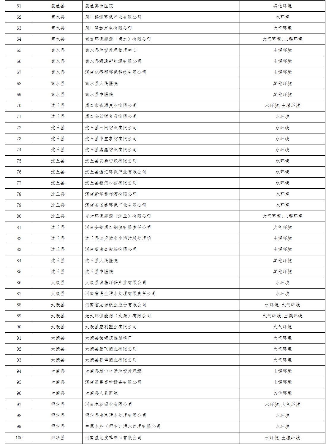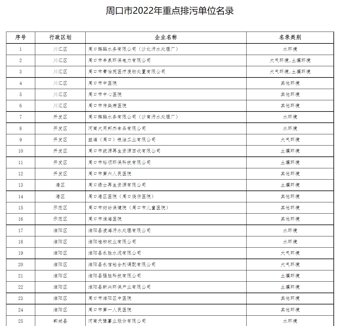 按照河南省生態(tài)環(huán)境廳《關(guān)于做好2022年重點(diǎn)排污單位名錄更新工作的通知》等文件要求,周口市局組織并指導(dǎo)各縣(市、區(qū))生態(tài)環(huán)境分局以2021年重點(diǎn)排污單位名錄為基礎(chǔ),對(duì)擬納入2022年的全市重點(diǎn)排污單位進(jìn)行了動(dòng)態(tài)更新?,F(xiàn)將《周口市2022年重點(diǎn)排污單位名錄》印發(fā)給你們,請(qǐng)按照有關(guān)要求切實(shí)做好轄區(qū)內(nèi)重點(diǎn)排污單位的環(huán)境管理工作。該名錄納入類別涉及水環(huán)境重點(diǎn)排污、大氣環(huán)境重點(diǎn)排污、土壤環(huán)境重點(diǎn)排污、其他重點(diǎn)排污。詳情如下: