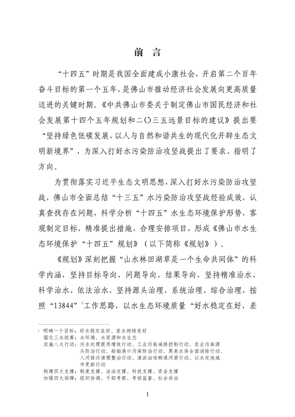 《佛山市水生態(tài)環(huán)境保護(hù)“十四五”規(guī)劃》