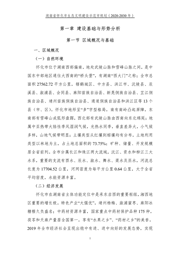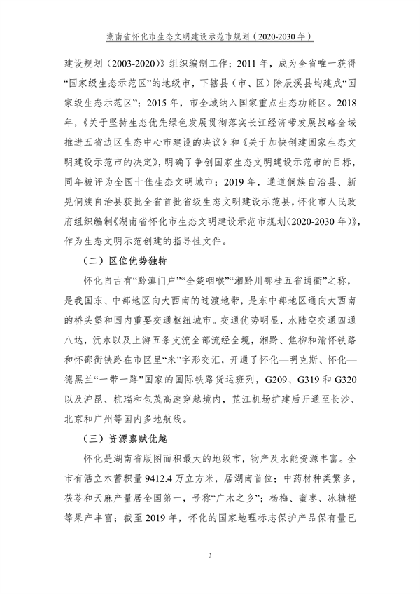 《湖南省懷化市生態(tài)文明建設(shè)示范市規(guī)劃(2020-2030年)》