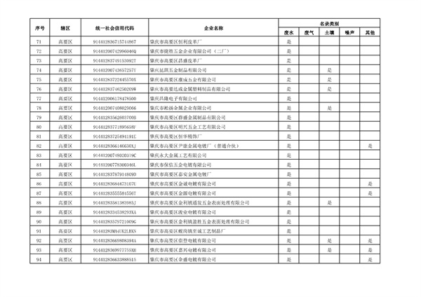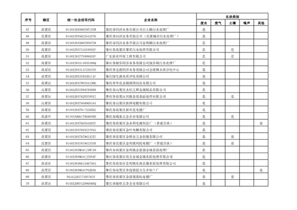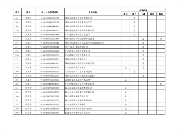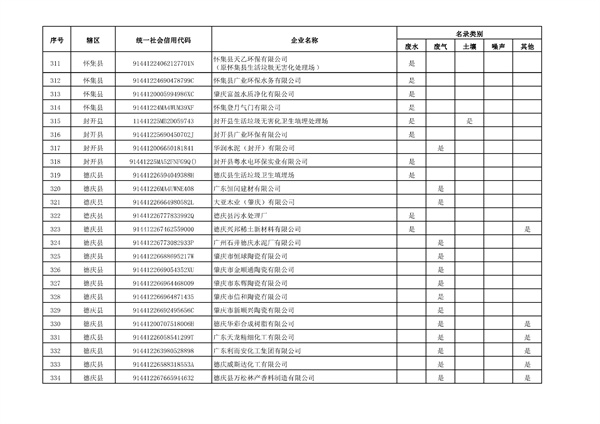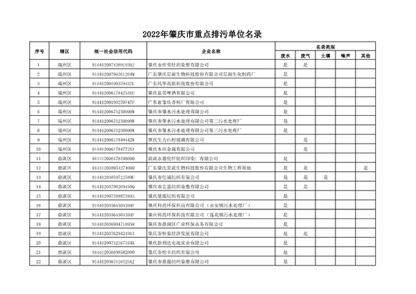 日前,肇慶市生態(tài)環(huán)境局公示了2022年肇慶市重點排污單位名錄,共計361家單位入選,名錄類別涉及廢水污染、廢氣污染、土壤污染、噪聲污染和其他污染領域。詳情如下: