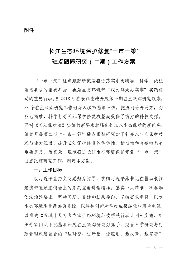 附件:1.長江生態(tài)環(huán)境保護(hù)修復(fù)“一市一策”駐點跟蹤研究(二期)工作方案