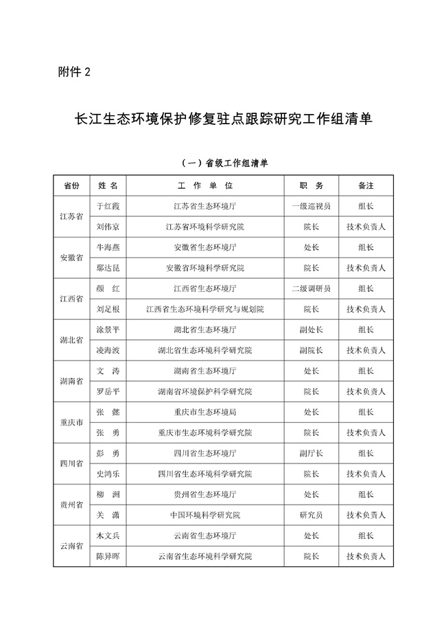 2.長江生態(tài)環(huán)境保護(hù)修復(fù)駐點跟蹤研究工作組清單