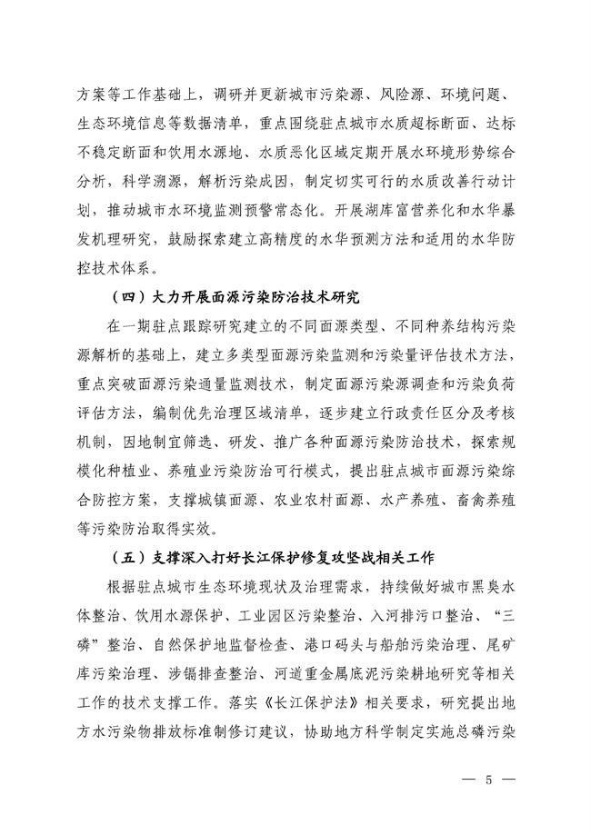 為深入貫徹習(xí)近平總書記關(guān)于推動長江經(jīng)濟(jì)帶發(fā)展系列重要講話精神,推進(jìn)落實《長江保護(hù)法》要求,強(qiáng)化科技支撐各地深入打好長江保護(hù)修復(fù)攻堅戰(zhàn),盡快補(bǔ)齊水生態(tài)保護(hù)的技術(shù)與能力短板,進(jìn)一步提升長江生態(tài)環(huán)境保護(hù)修復(fù)的科學(xué)性、精準(zhǔn)性和有效性,結(jié)合《百城千縣萬名專家生態(tài)環(huán)境科技幫扶行動計劃》的實施,我部決定繼續(xù)開展長江生態(tài)環(huán)境保護(hù)修復(fù)駐點跟蹤研究工作,制定了《長江生態(tài)環(huán)境保護(hù)修復(fù)“一市一策”駐點跟蹤研究(二期)工作方案》(以下簡稱《工作方案》,見附件1),組建了駐點跟蹤研究工作組(見附件2),組織專家團(tuán)隊深入城市一線進(jìn)行駐點跟蹤研究和技術(shù)指導(dǎo)。
