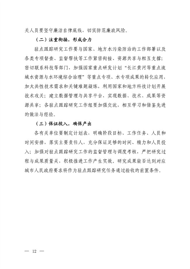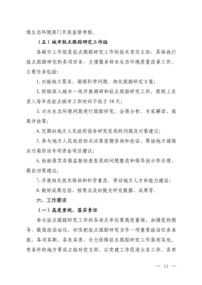 請各有關(guān)單位高度重視,加強(qiáng)組織實施,根據(jù)《工作方案》,結(jié)合地方實際需求,明確研究任務(wù),完善工作機(jī)制,落實保障條件,積極推進(jìn)駐點跟蹤研究工作,切實提升各地精準(zhǔn)、科學(xué)、依法治污水平。駐點跟蹤研究相關(guān)進(jìn)展與重大事項及時報告我部。