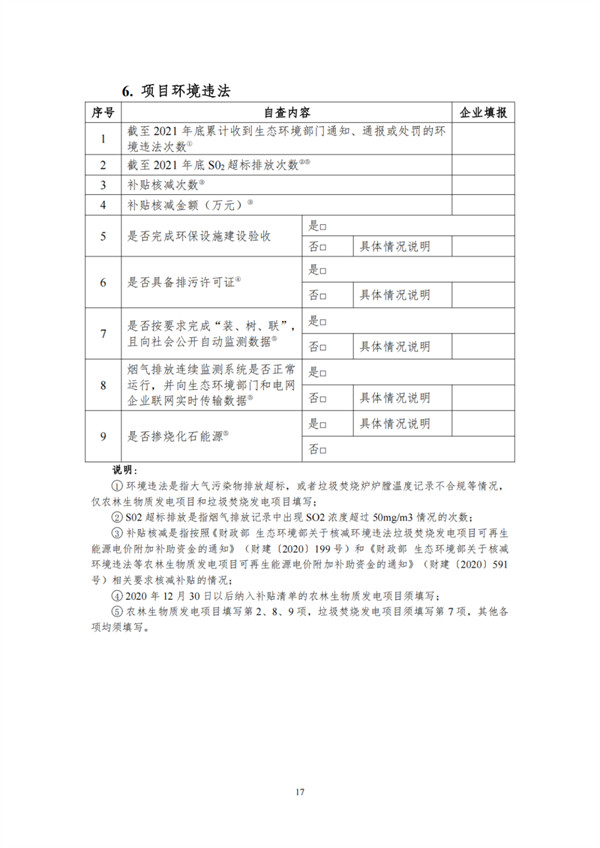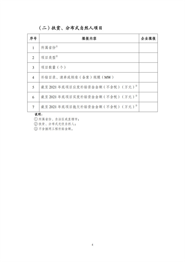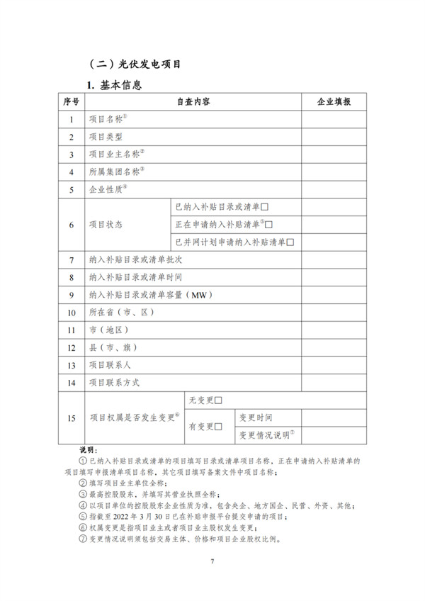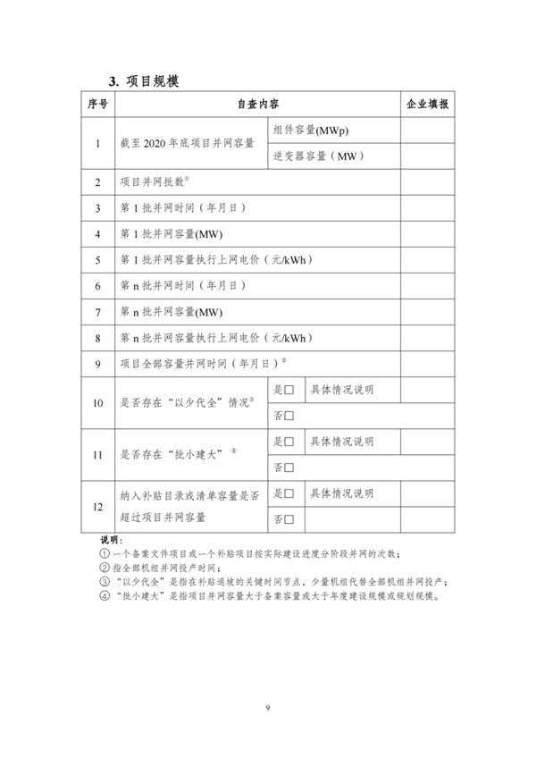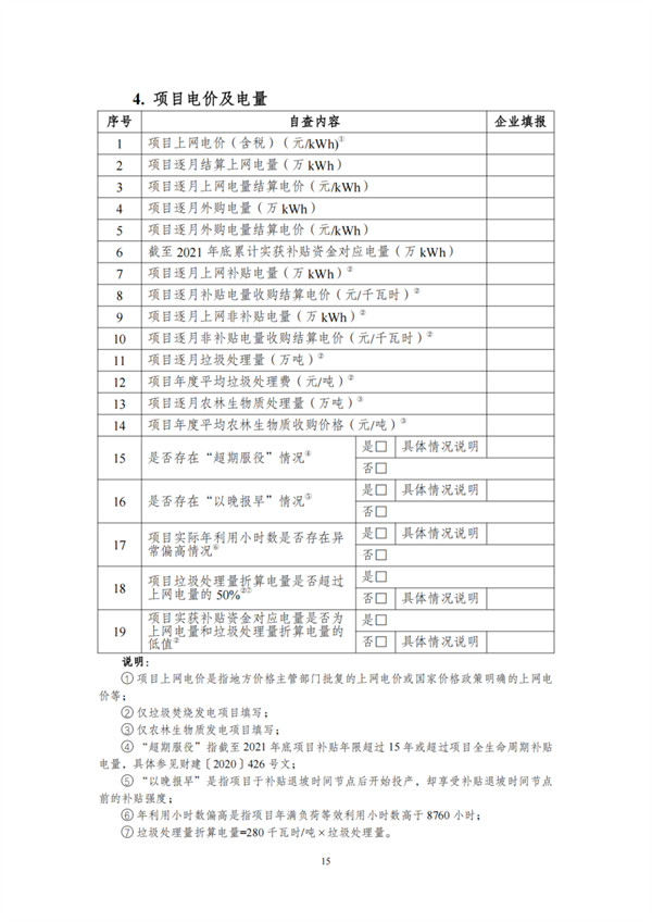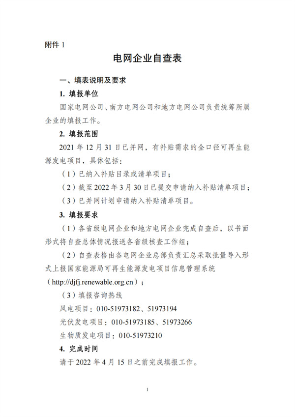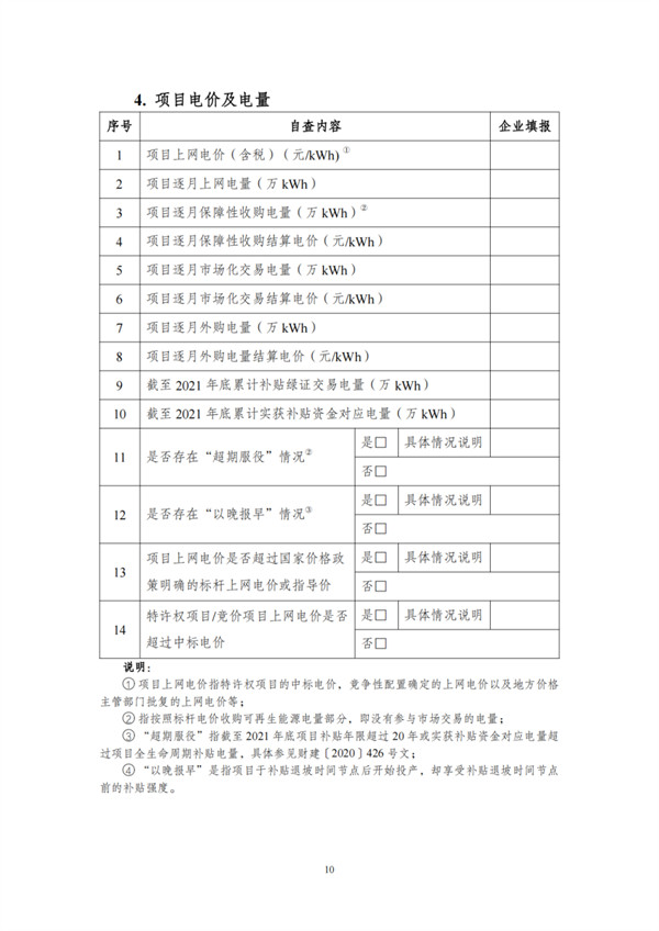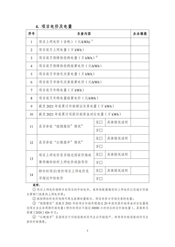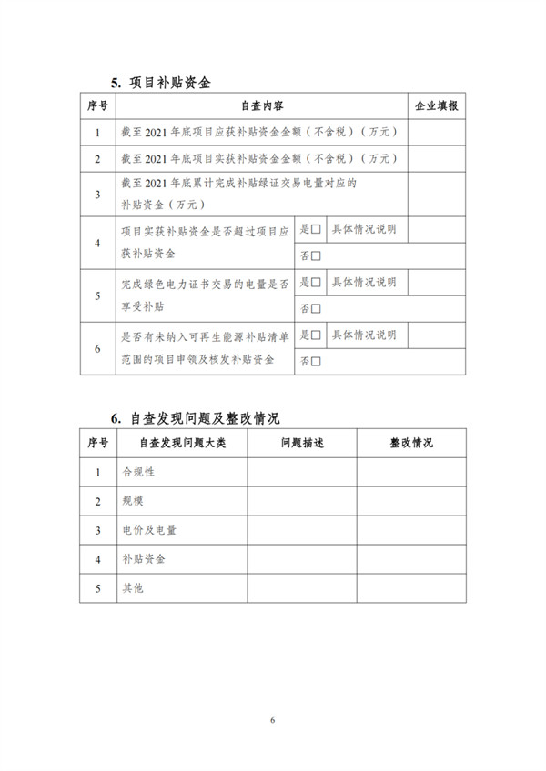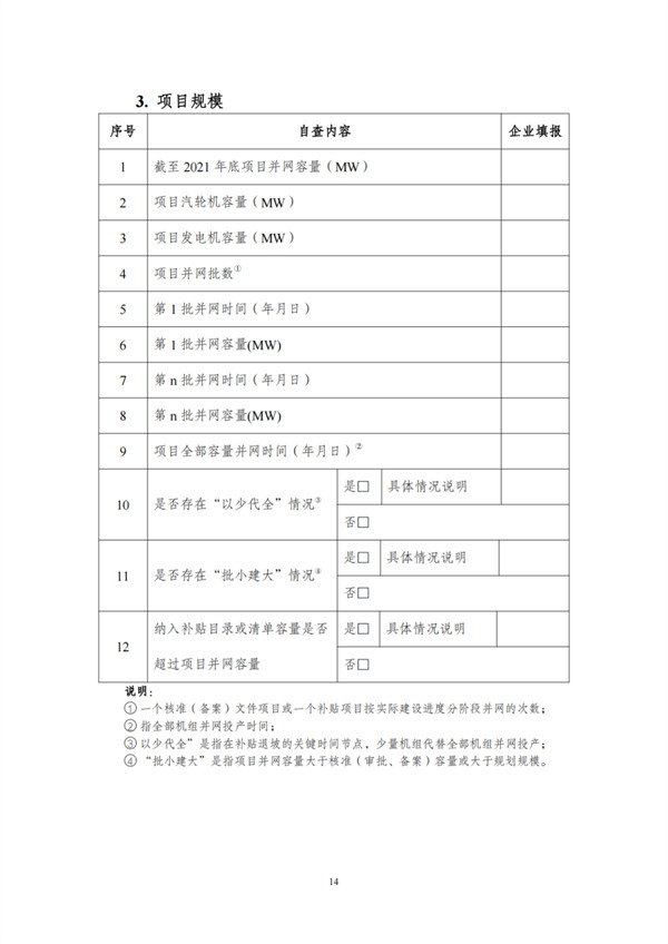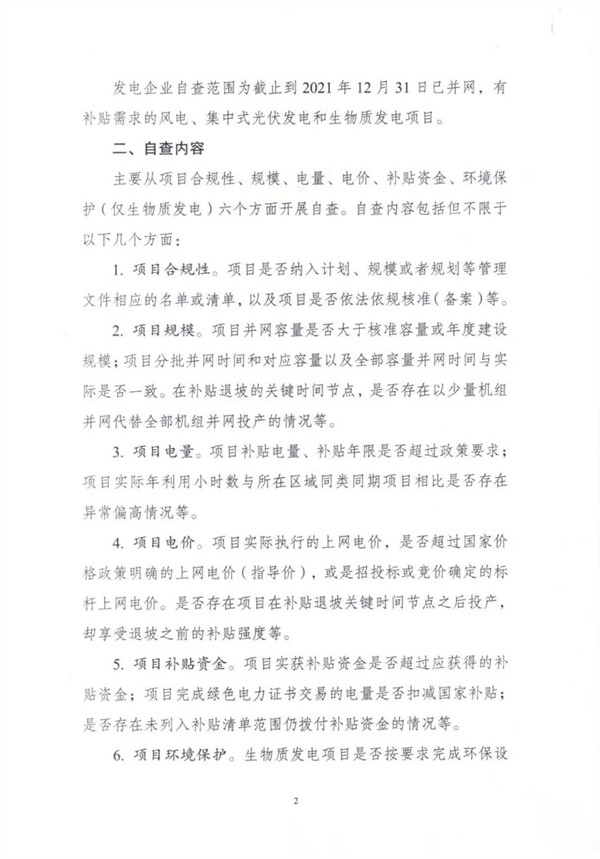 根據(jù)文件,自查對象包括電網(wǎng)和發(fā)電企業(yè),范圍為截止到2021年12月31日已并網(wǎng)有補(bǔ)貼需求的全口徑可再生能源發(fā)電項(xiàng)目,主要為風(fēng)電、集中式光伏電站以及生物質(zhì)發(fā)電項(xiàng)目。