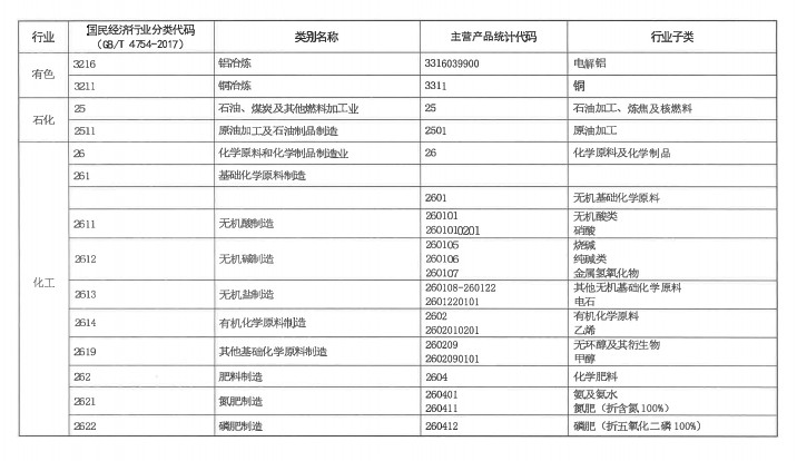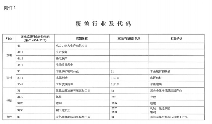 2020年和2021年任一年溫室氣體排放量達2.6萬噸二氧化碳當量(綜合能源消費量約1萬噸標準煤)及以上的發(fā)電、石化、化工、建材、鋼鐵、有色、造紙、民航行業(yè)企業(yè)或其他經(jīng)濟組織(行業(yè)子類見附件1)(以下簡稱重點排放單位),符合上述年度排放量要求的自備電廠(不限于附件1所列行業(yè)),視同發(fā)電行業(yè)重點排放單位。