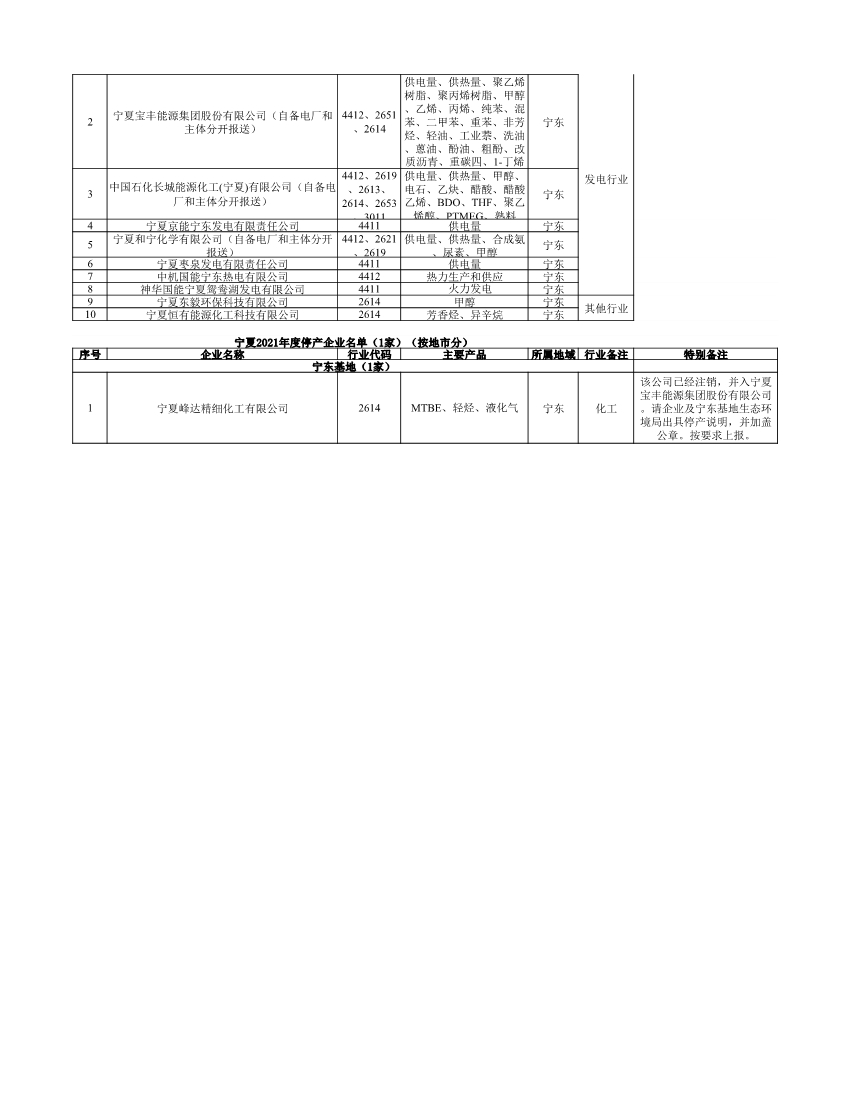 各地市及寧東管委會生態(tài)環(huán)境局負責組織督促行政區(qū)域內(nèi)重點排放單位,按時完成報送溫室氣體排放報告、信息公開等工作,在2022年3月29日前,結(jié)合本通知附件1中行業(yè)子類對《寧夏2021年度擬納入控排企業(yè)名單》(附件2)進行核實確認,對名單中停產(chǎn)企業(yè),出具情況說明并加蓋公章后報送至自治區(qū)生態(tài)環(huán)境廳。同時,負責將本通知送達各重點排放單位。