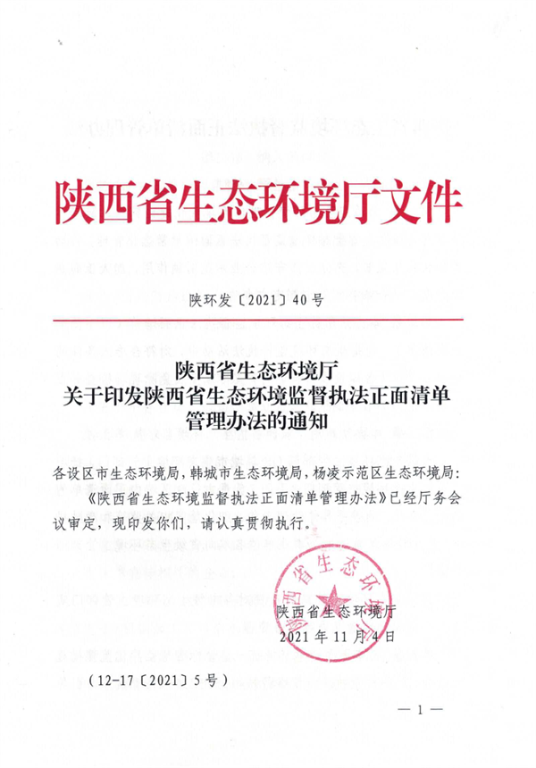 《陜西省生態(tài)環(huán)境監(jiān)督執(zhí)法正面清單管理辦法》(陜環(huán)發(fā)【2021】40號(hào))