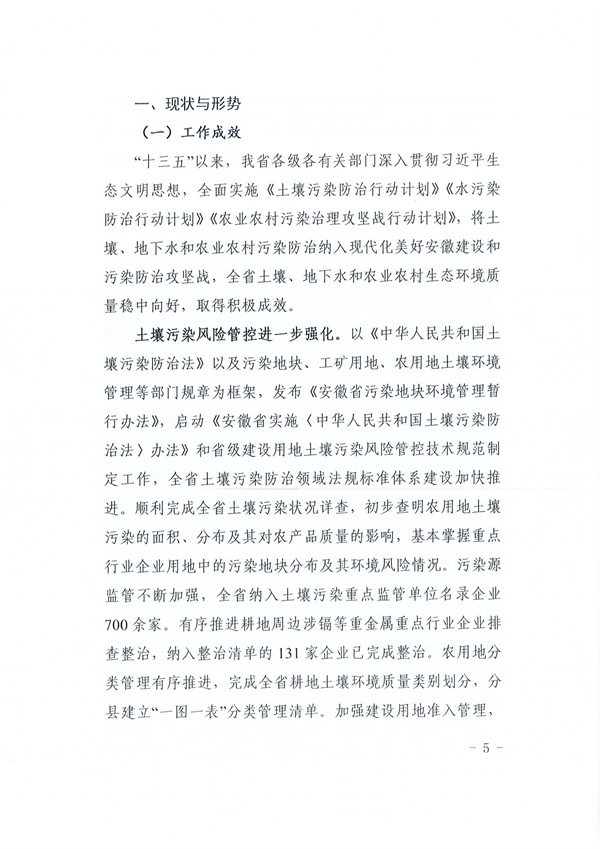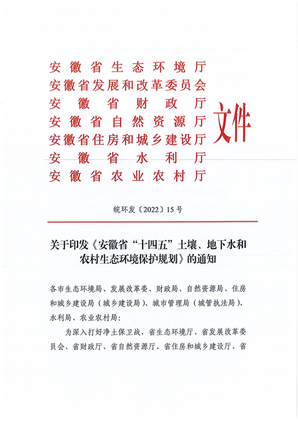 《安徽省“十四五”土壤、地下水和農(nóng)村生態(tài)環(huán)境保護(hù)規(guī)劃》(皖環(huán)發(fā)【2022】15號(hào))