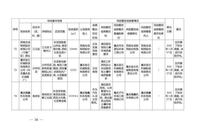《重慶市建設(shè)用地土壤污染風(fēng)險管控和修復(fù)名錄》(截至2022年3月29日)