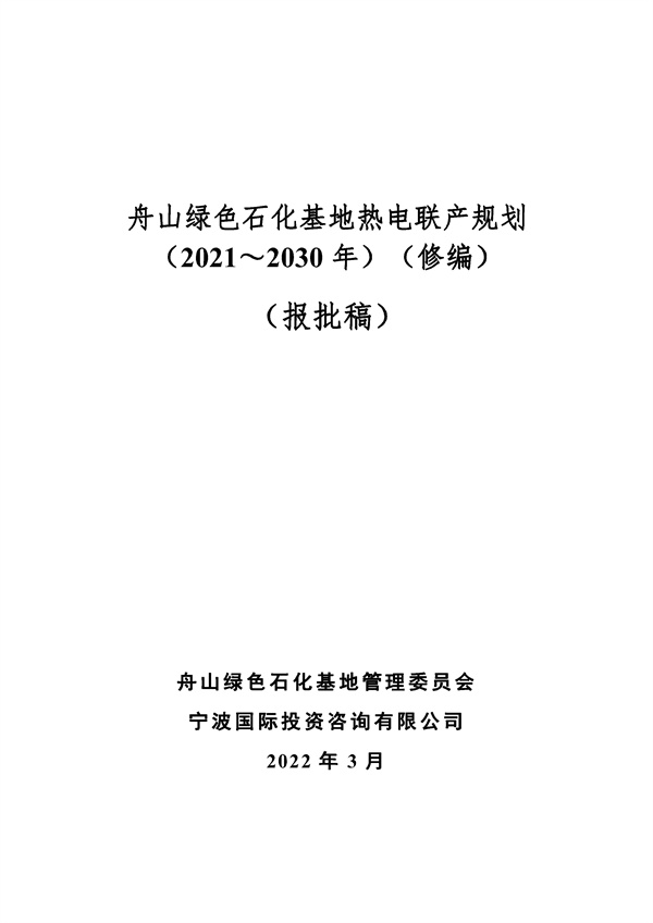 浙江省發(fā)展和改革委員會《浙江省 舟山綠色石化基地熱電聯(lián)產(chǎn)規(guī)劃(2021—2030年)(修編)》