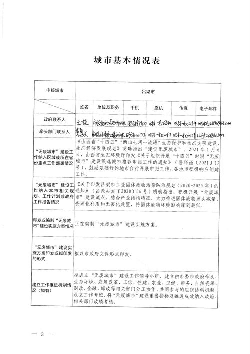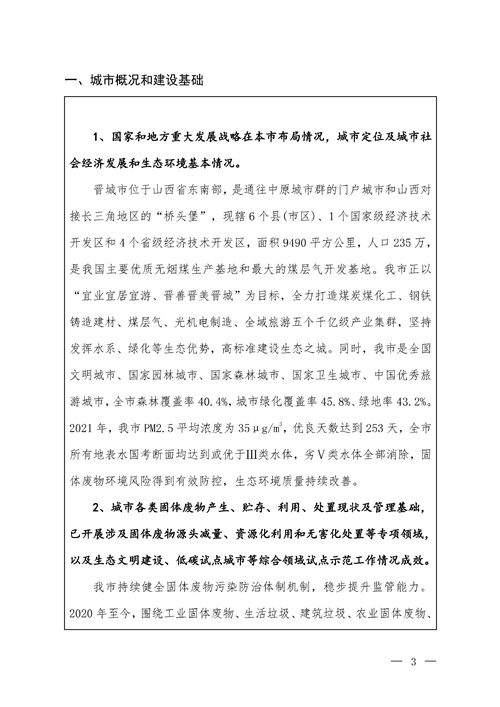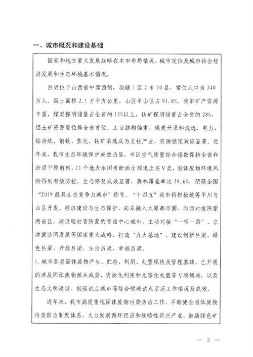 日前,山西省推薦“十四五”時期“無廢城市”建設(shè)候選城市名單公布,呂梁、太原和晉城三城入選,同時公布了三城申報無廢城市的報告書。詳情如下: