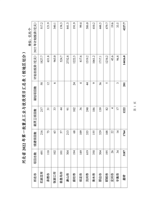 《2022年河北省重點(diǎn)工業(yè)和技改投資項(xiàng)目暨千項(xiàng)技改項(xiàng)目(第一批)計(jì)劃》