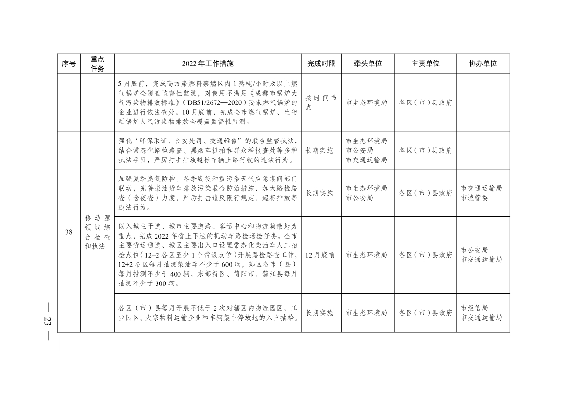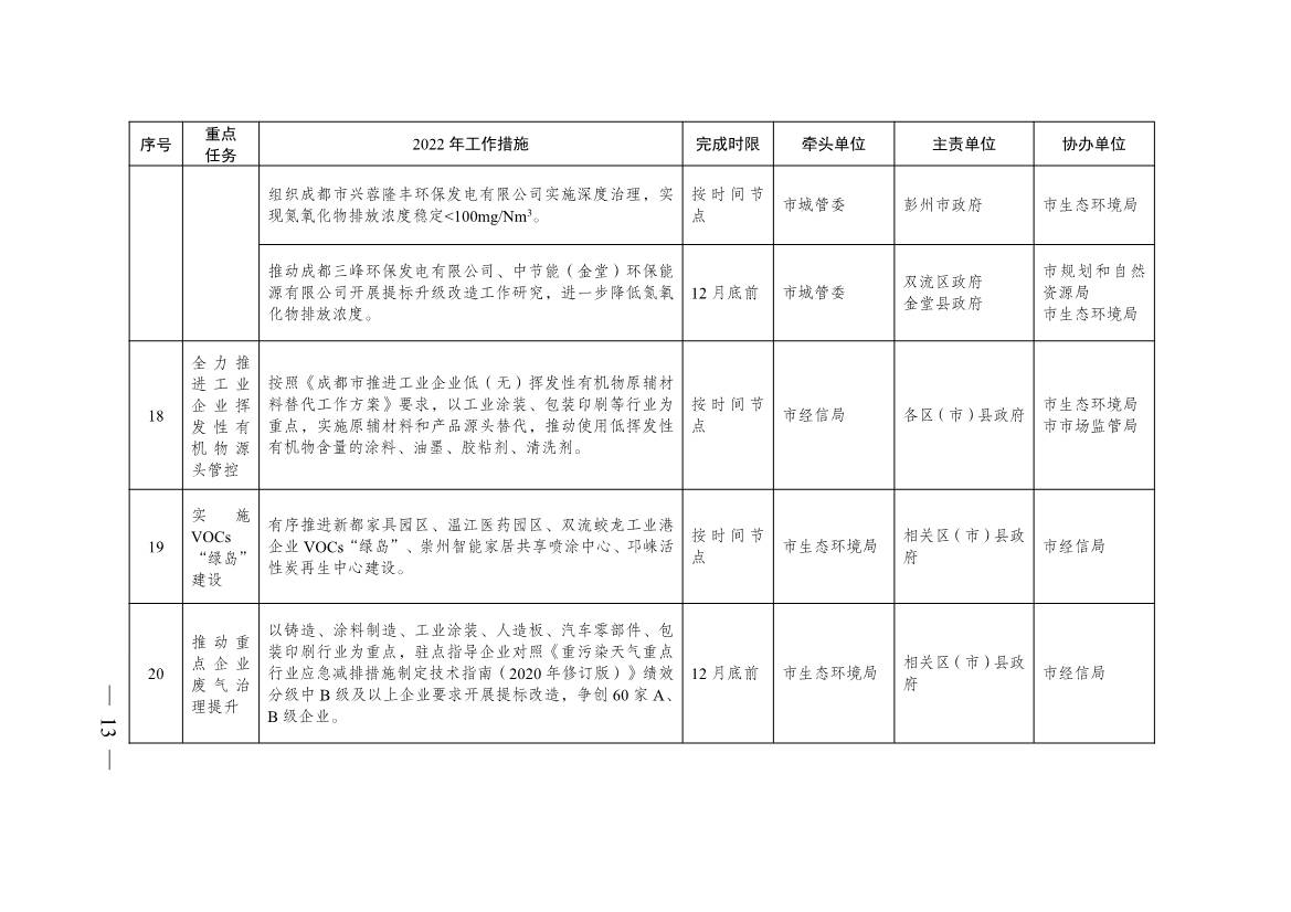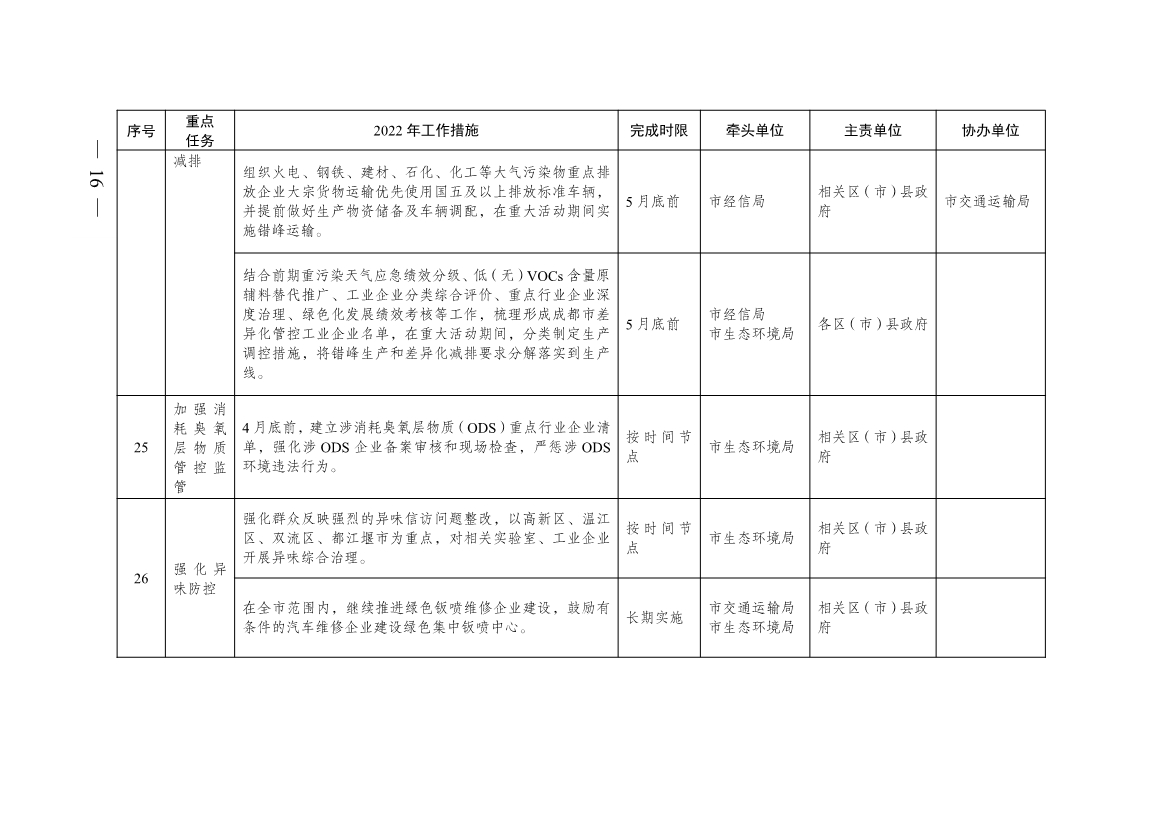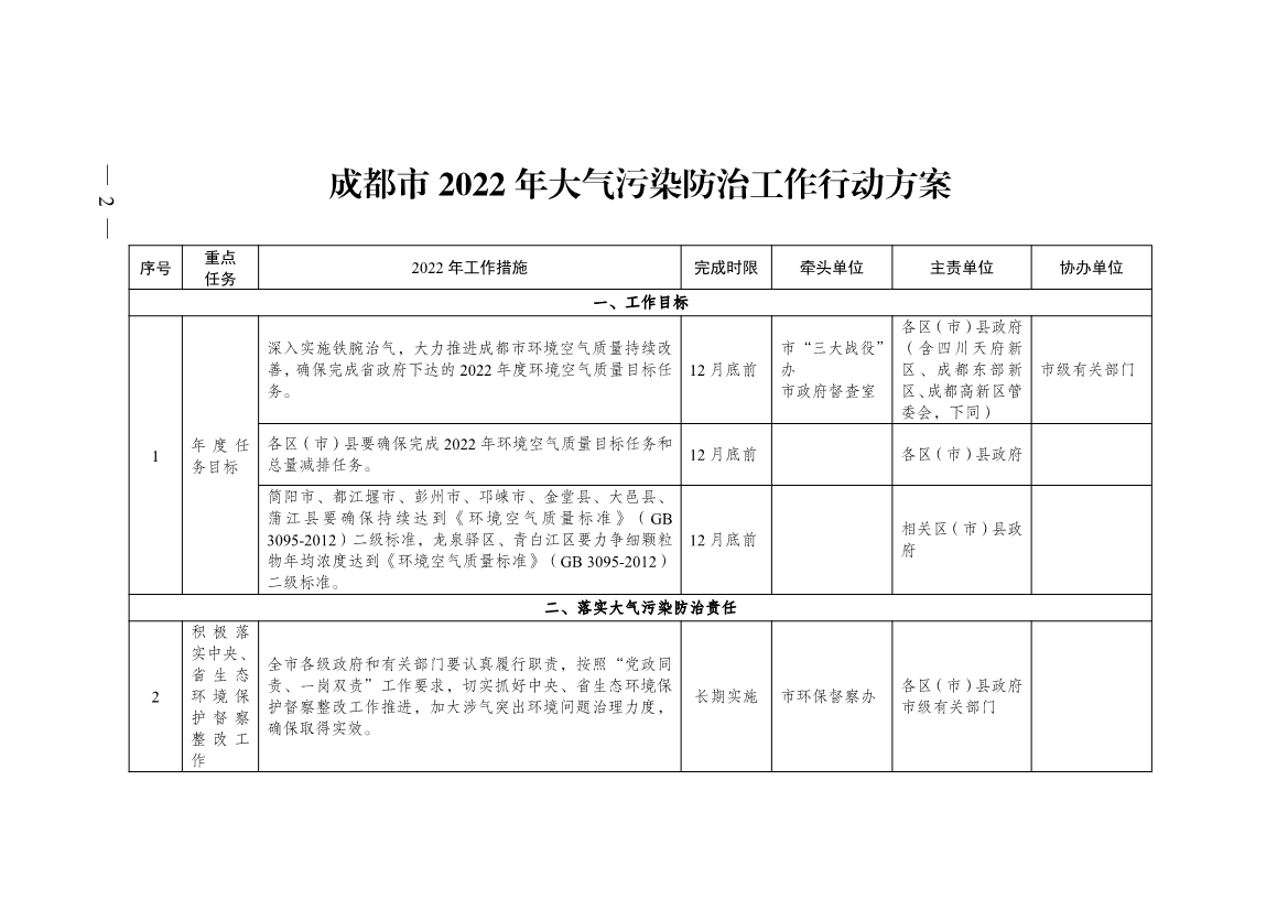 成都市大氣 水 土壤污染防治“三大戰(zhàn)役”領(lǐng)導(dǎo)小組關(guān)于印發(fā)《成都市2022年大氣污染防治工作行動方案》的通知
