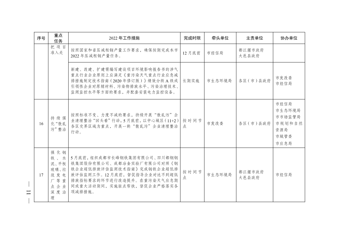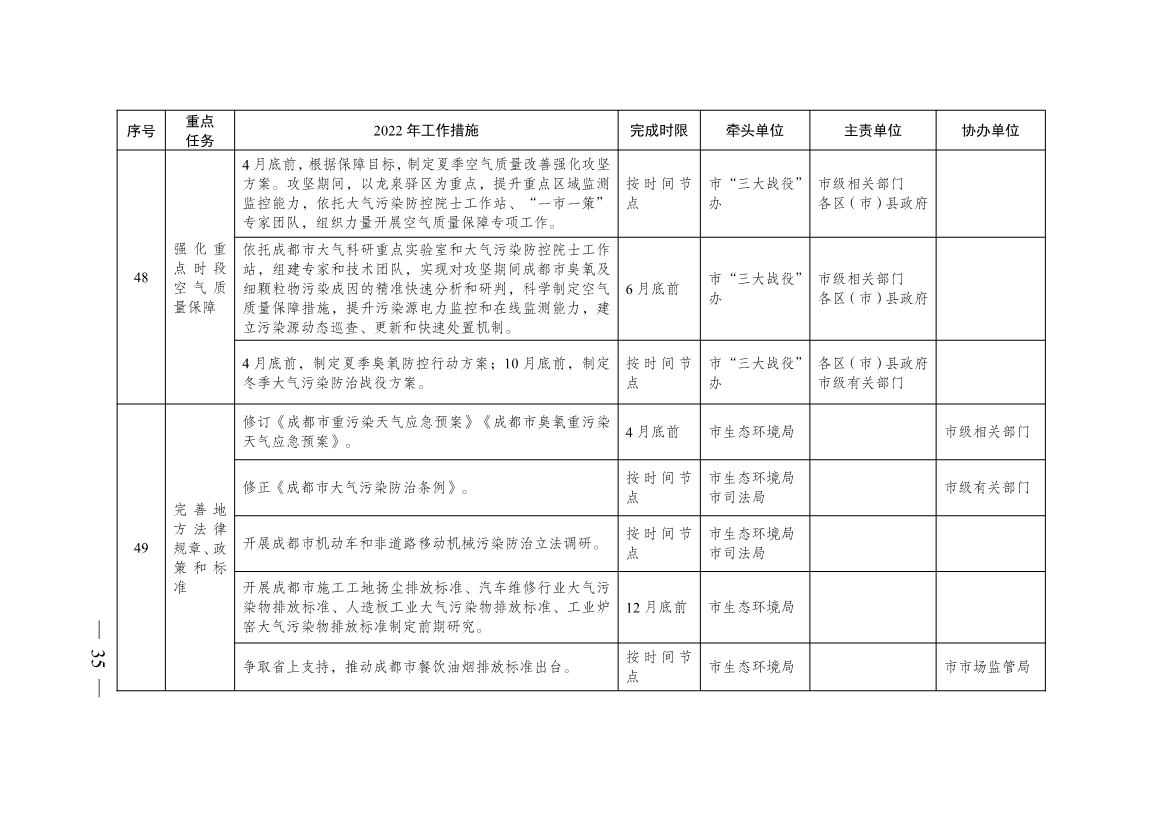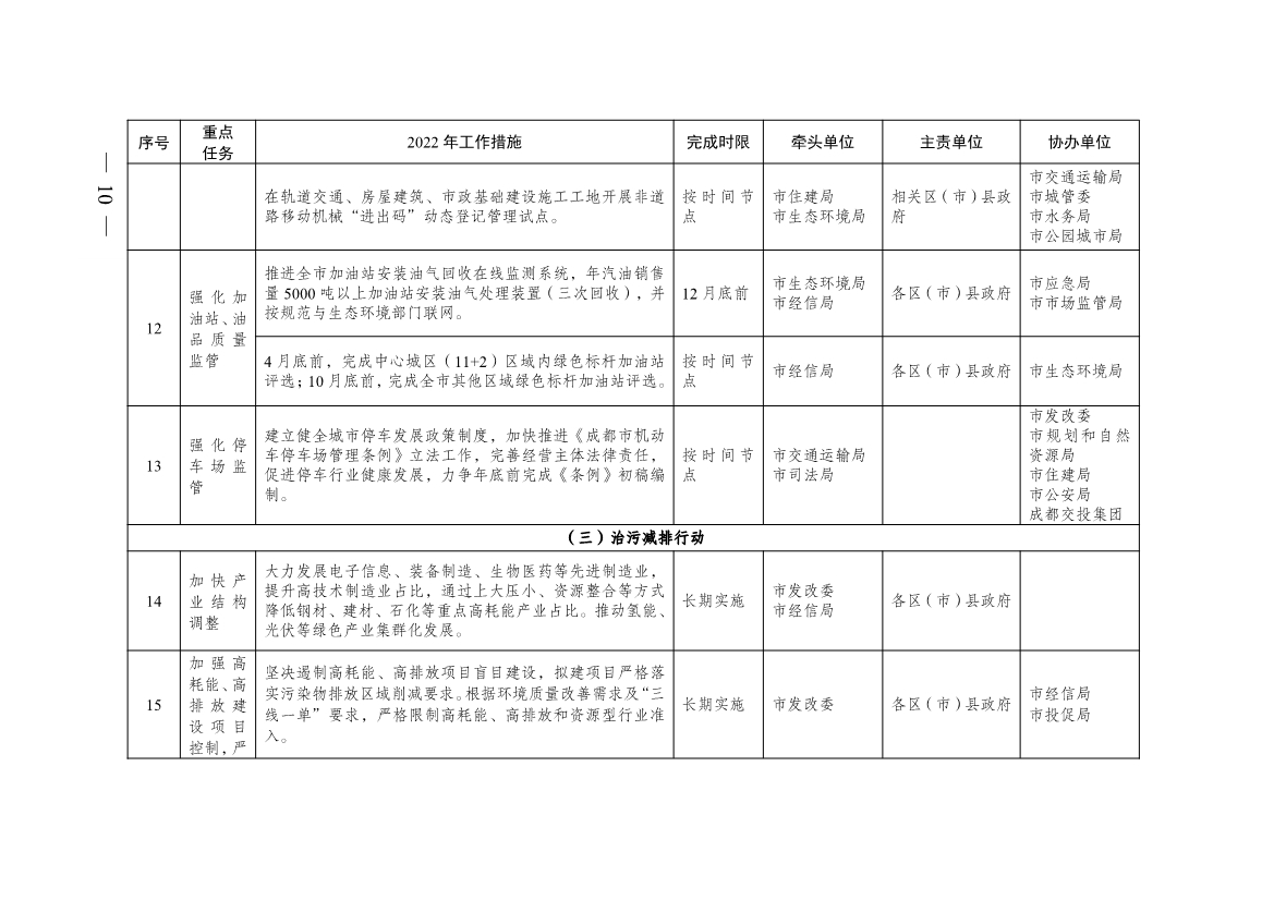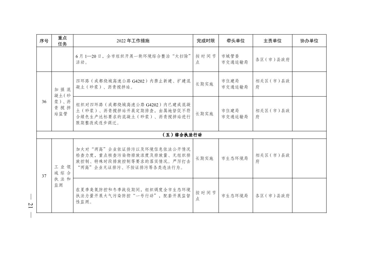 成都市大氣 水 土壤污染防治“三大戰(zhàn)役”領(lǐng)導(dǎo)小組關(guān)于印發(fā)《成都市2022年大氣污染防治工作行動方案》的通知