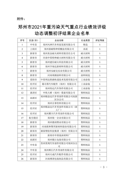 附件:鄭州市2021年重污染天氣重點(diǎn)行業(yè)績(jī)效評(píng)級(jí)動(dòng)態(tài)調(diào)整初評(píng)結(jié)果企業(yè)名單