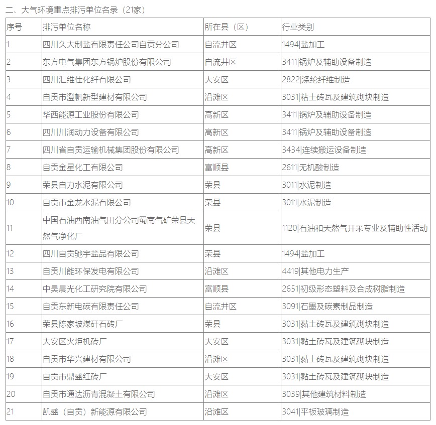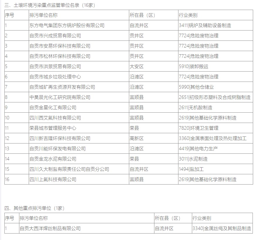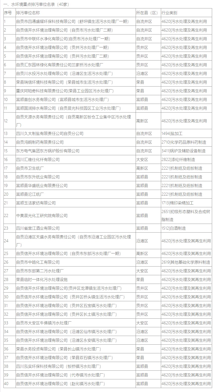 《2022年自貢市重點(diǎn)排污單位名錄》