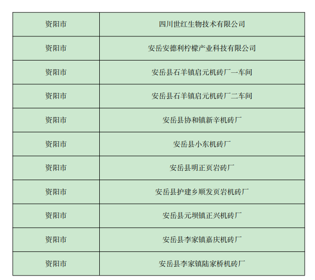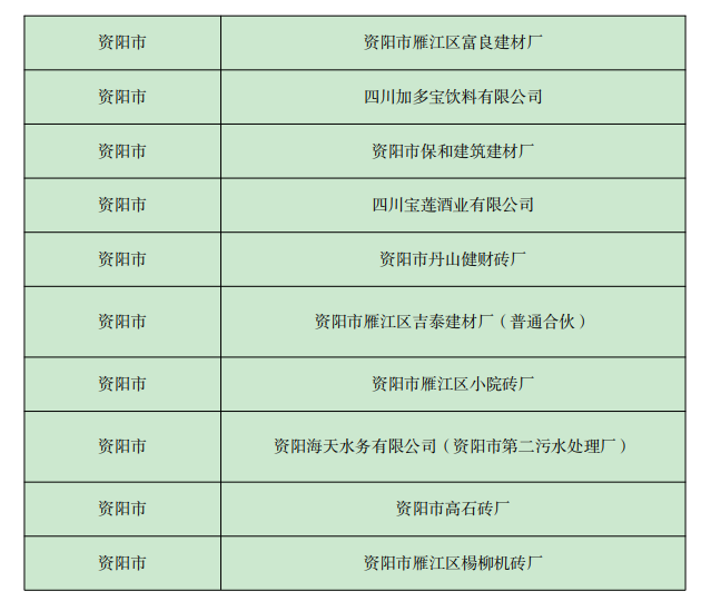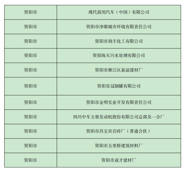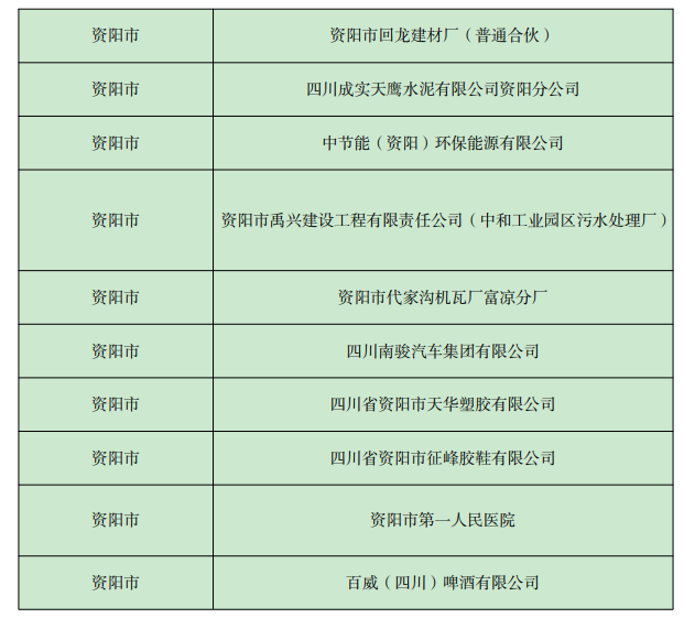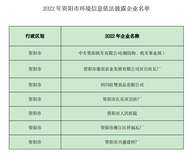 《四川省 2022年資陽(yáng)市環(huán)境信息依法披露企業(yè)名單》