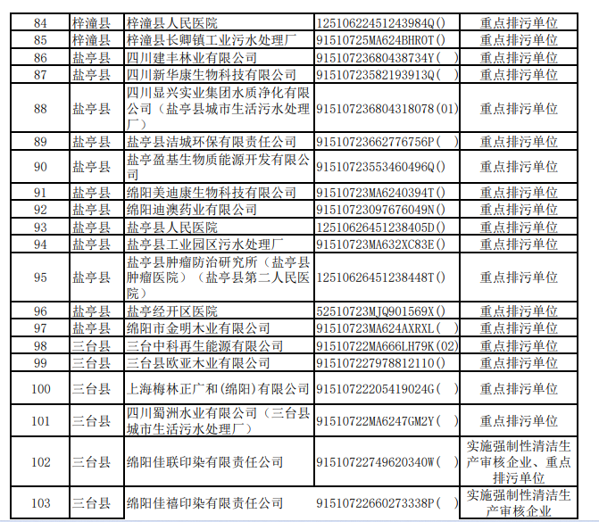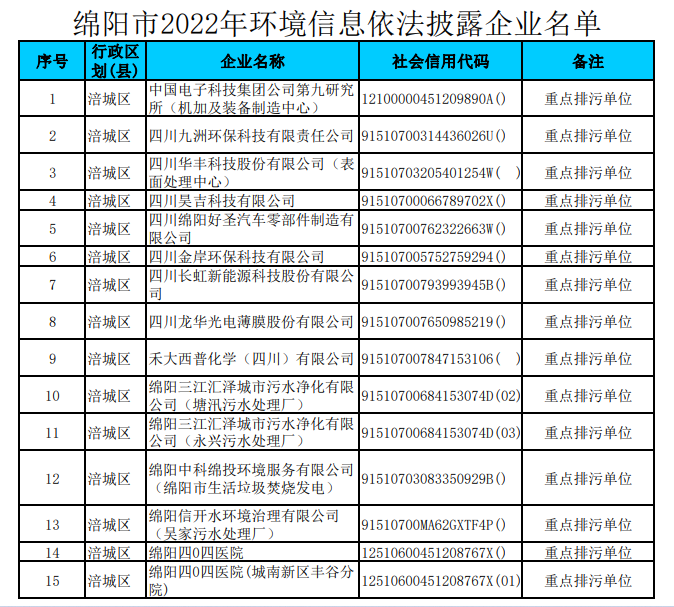 《綿陽(yáng)市2022年環(huán)境信息依法披露企業(yè)名單》