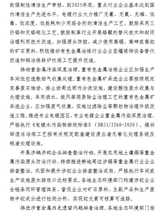 《浙江省重金屬污染防控工作方案》( 征求意見稿 )