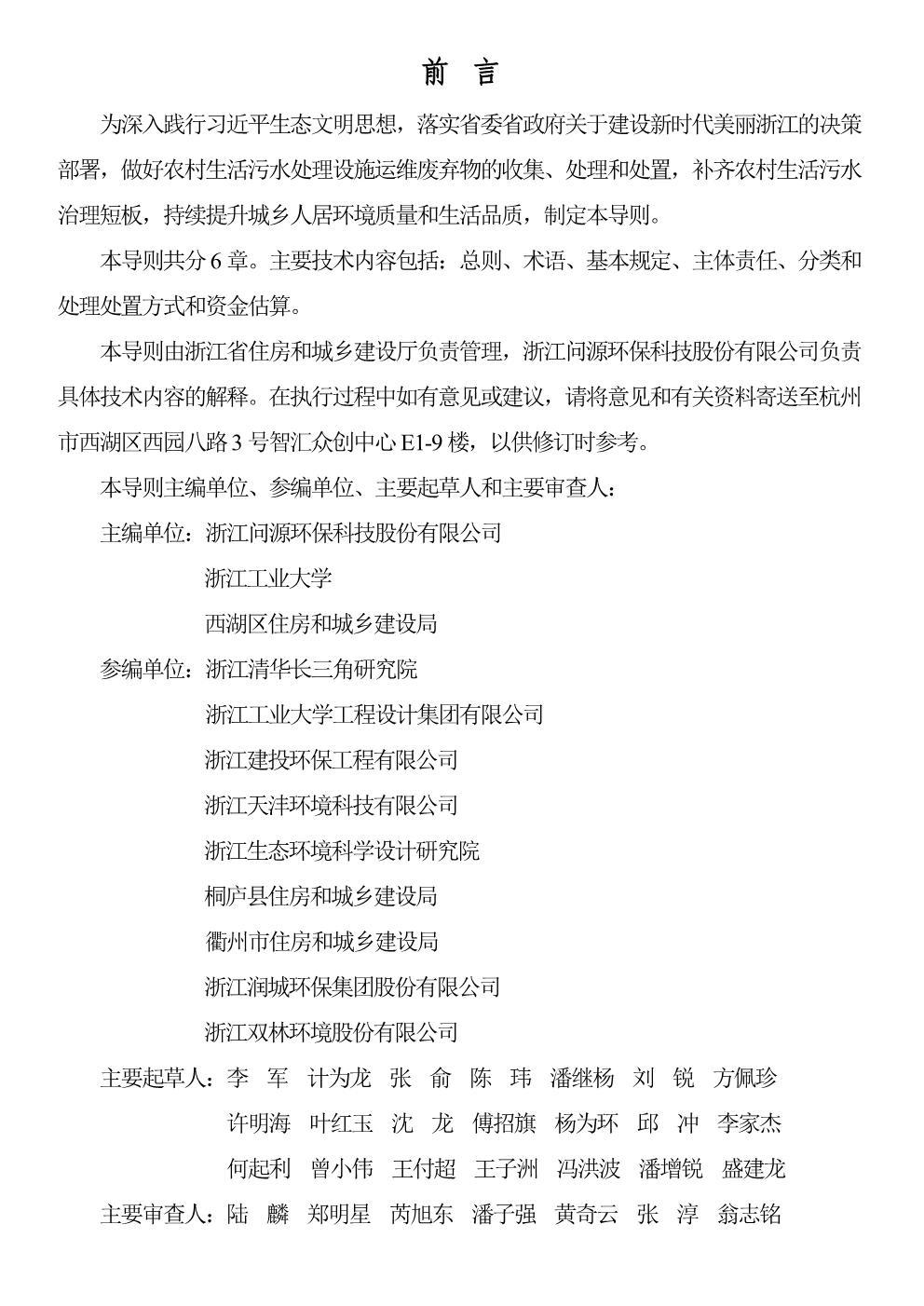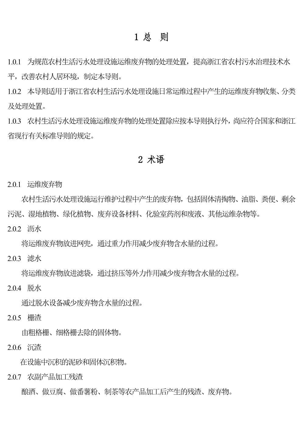 《浙江省 農(nóng)村生活污水處理設(shè)施運(yùn)維廢棄物處理處置導(dǎo)則》