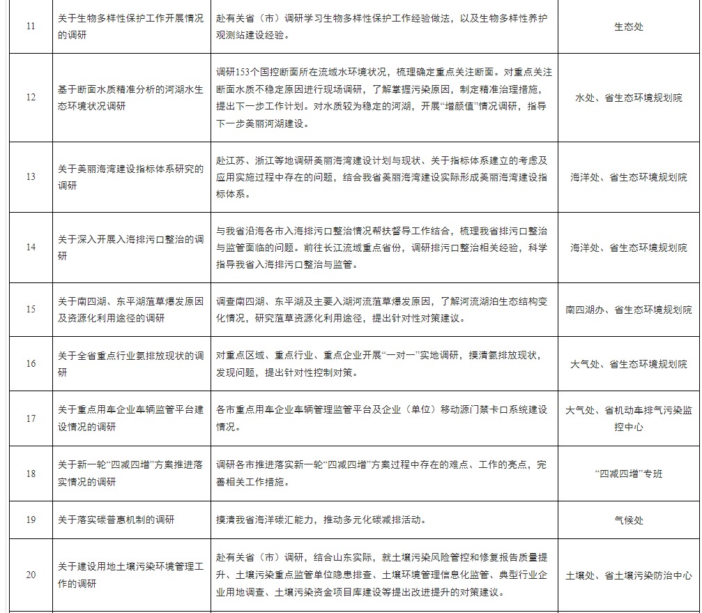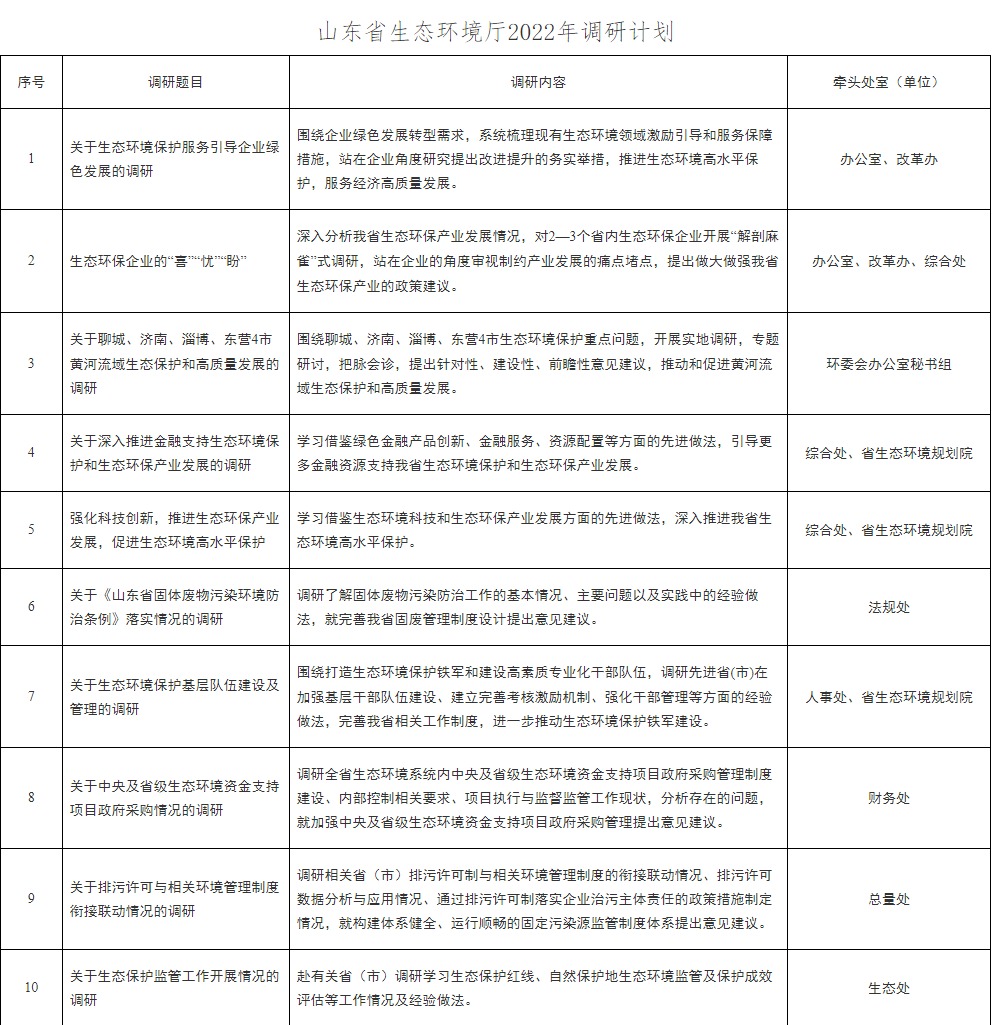 《山東省生態(tài)環(huán)境廳2022年調(diào)研計劃》