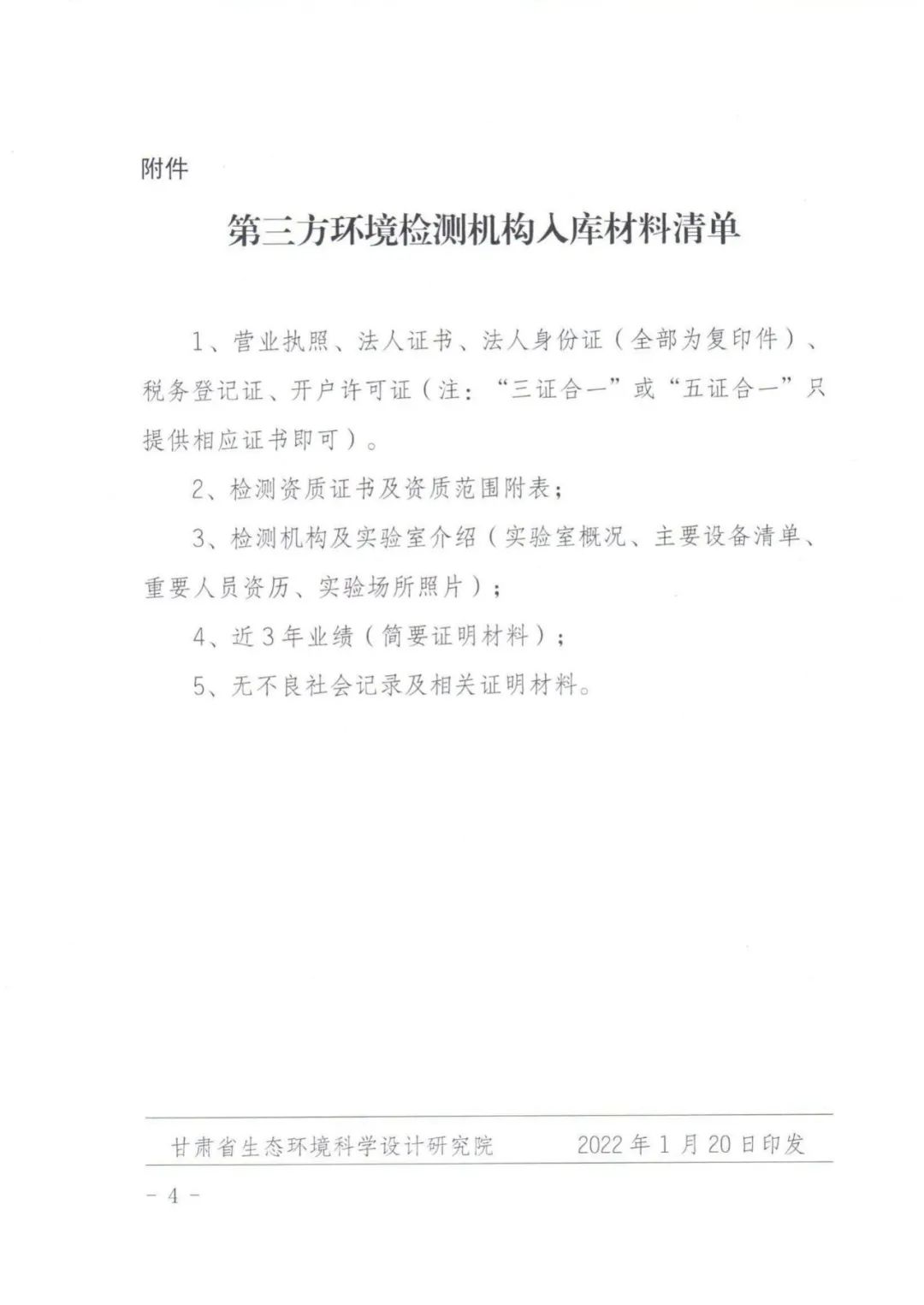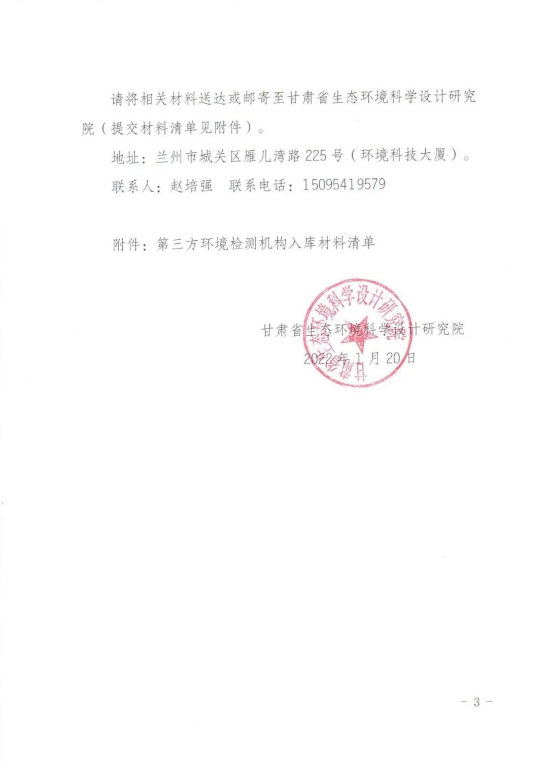 《甘肅省 第三方環(huán)境檢測機(jī)構(gòu)入庫遴選公告》(甘環(huán)院發(fā)【2022】6號)